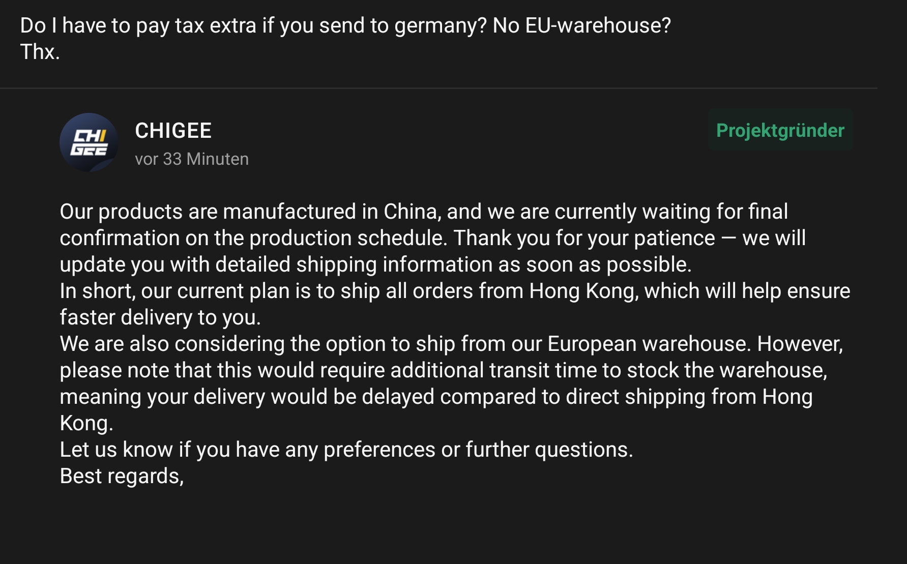 Hm, wird teuer. Also tax noch drauf. D.h. min. 500 Euro trotz VIP und Kickstarter. Sehe ich das richtig?