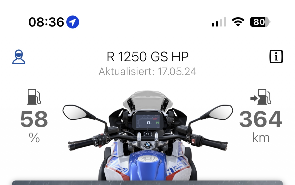 Meine Garage, dann auf dein Motorrad klicken... Im Unterpunkt Datenschutz. Das muss aber unter BT Verbindung bei aktivierter Zündung eingeschaltet werden...Für mich sieht es so aus als ob die App nur direkt über BT Verbindung zum Motorrad hat. Was muss man denn machen um über GSM eine Verbindung zu bekommen, wie und wo kann ich da was überprüfen bzw. einstellen.