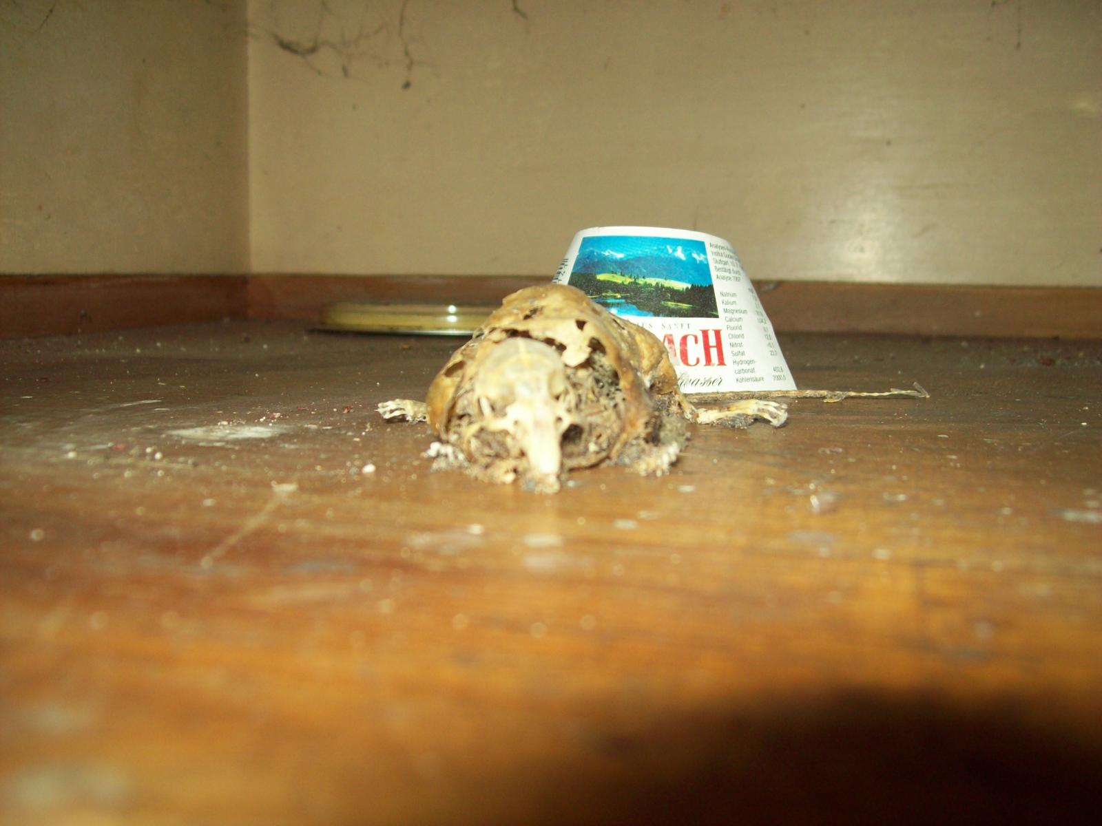 Hier haben wir unsere Gartenhütte nach ein paar Jahren wieder einmal aufgeschlossen und diese arme Maus gefunden.