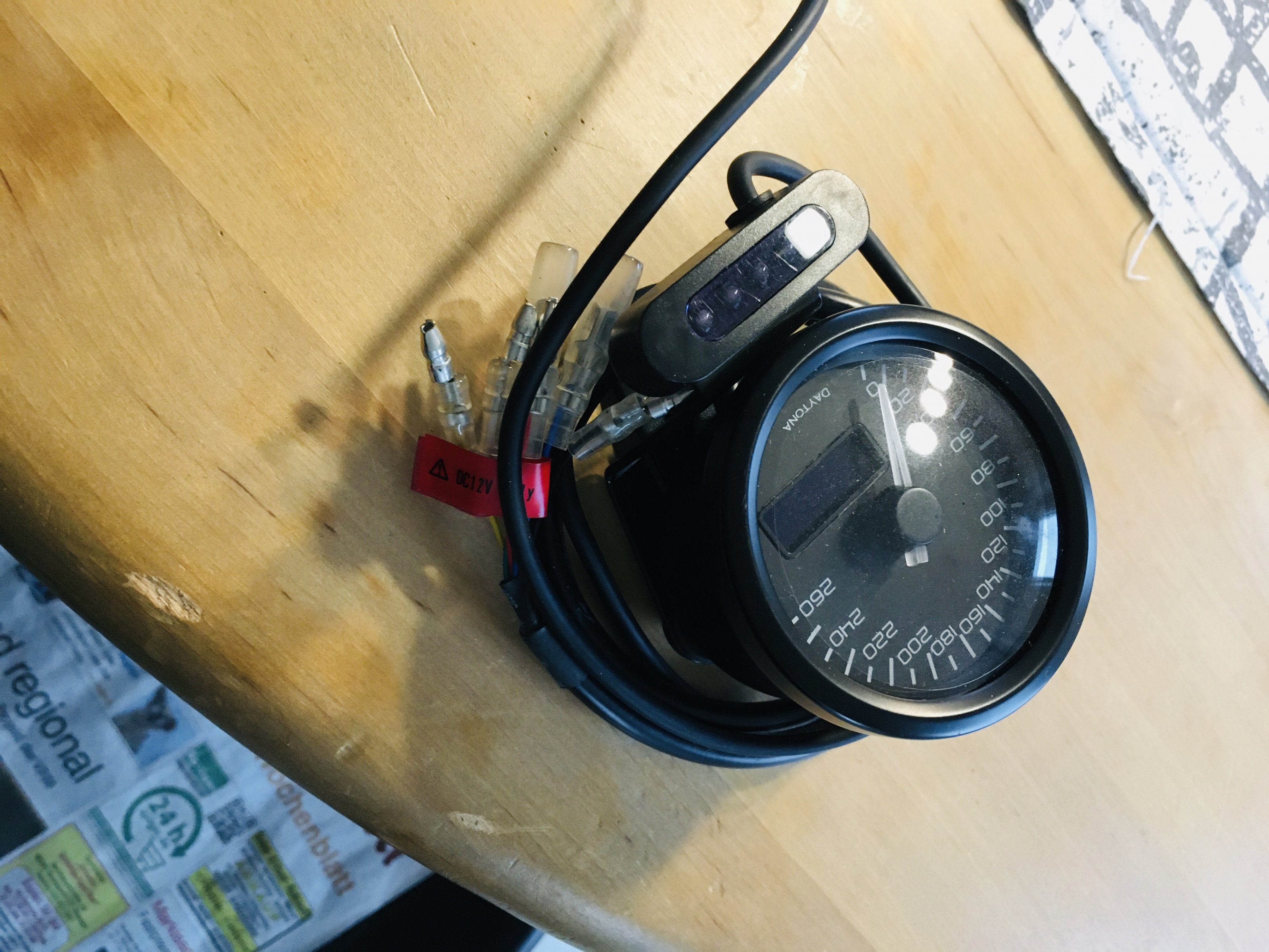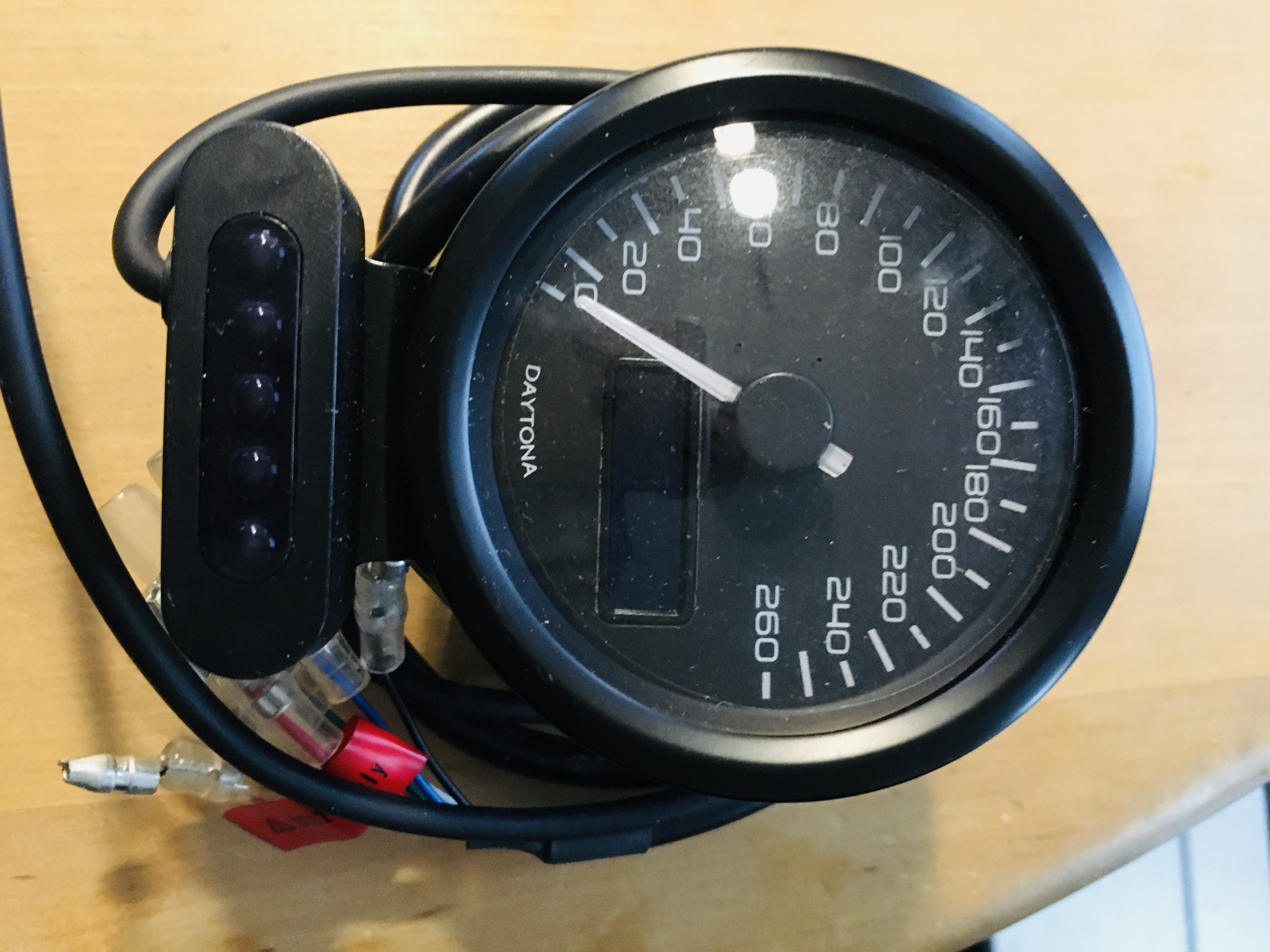 Verkaufe elektronischen Tacho von Daytona mit Kontrolllampen und Anschlüßen, neu und unbenutzt, für Umbau Roadster oder ähnlich, NP 119,-- oder 129,-- !