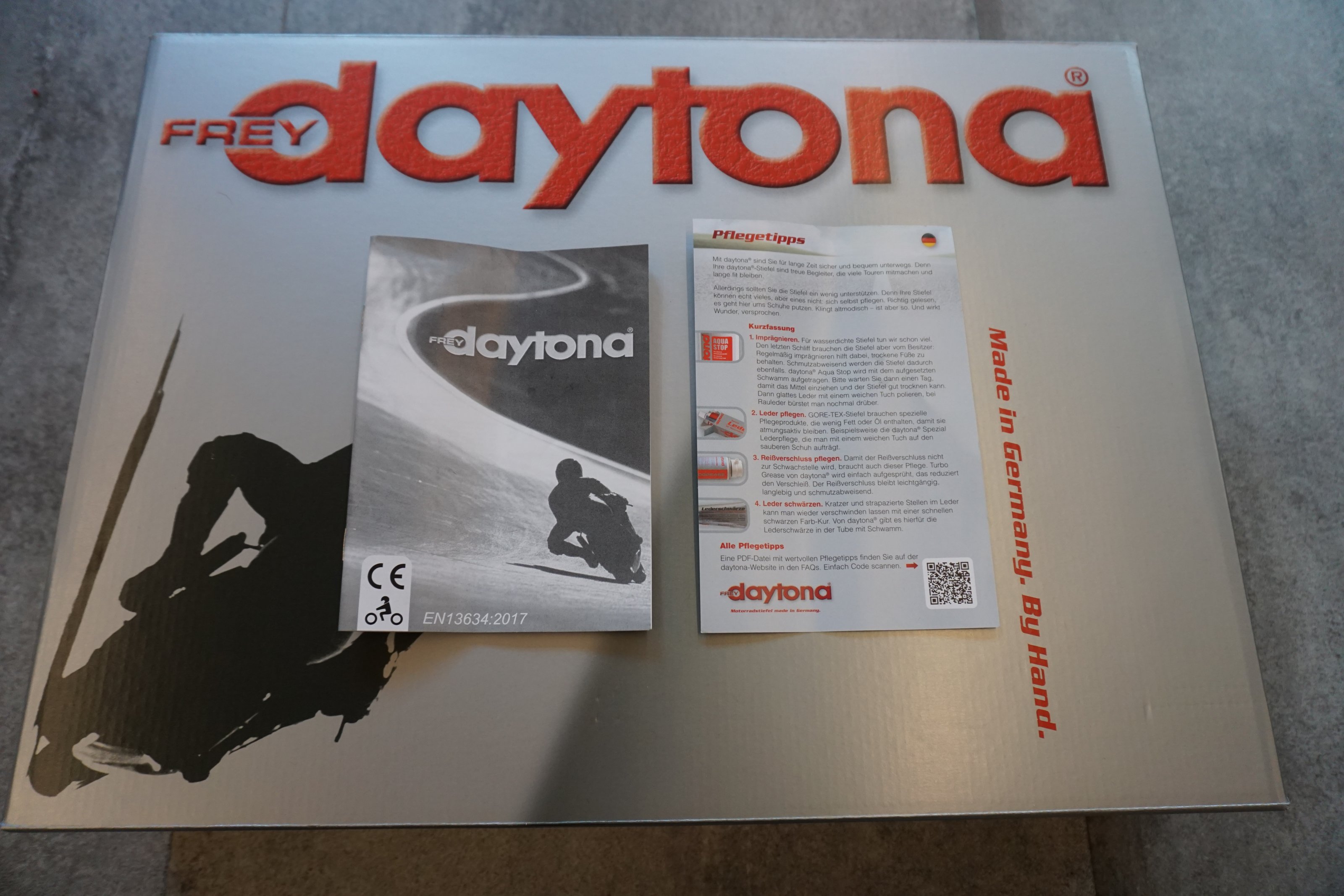 Sogar die Originalverpackung und das Heftchen mit den Pflegehinweisen ist noch dabei .