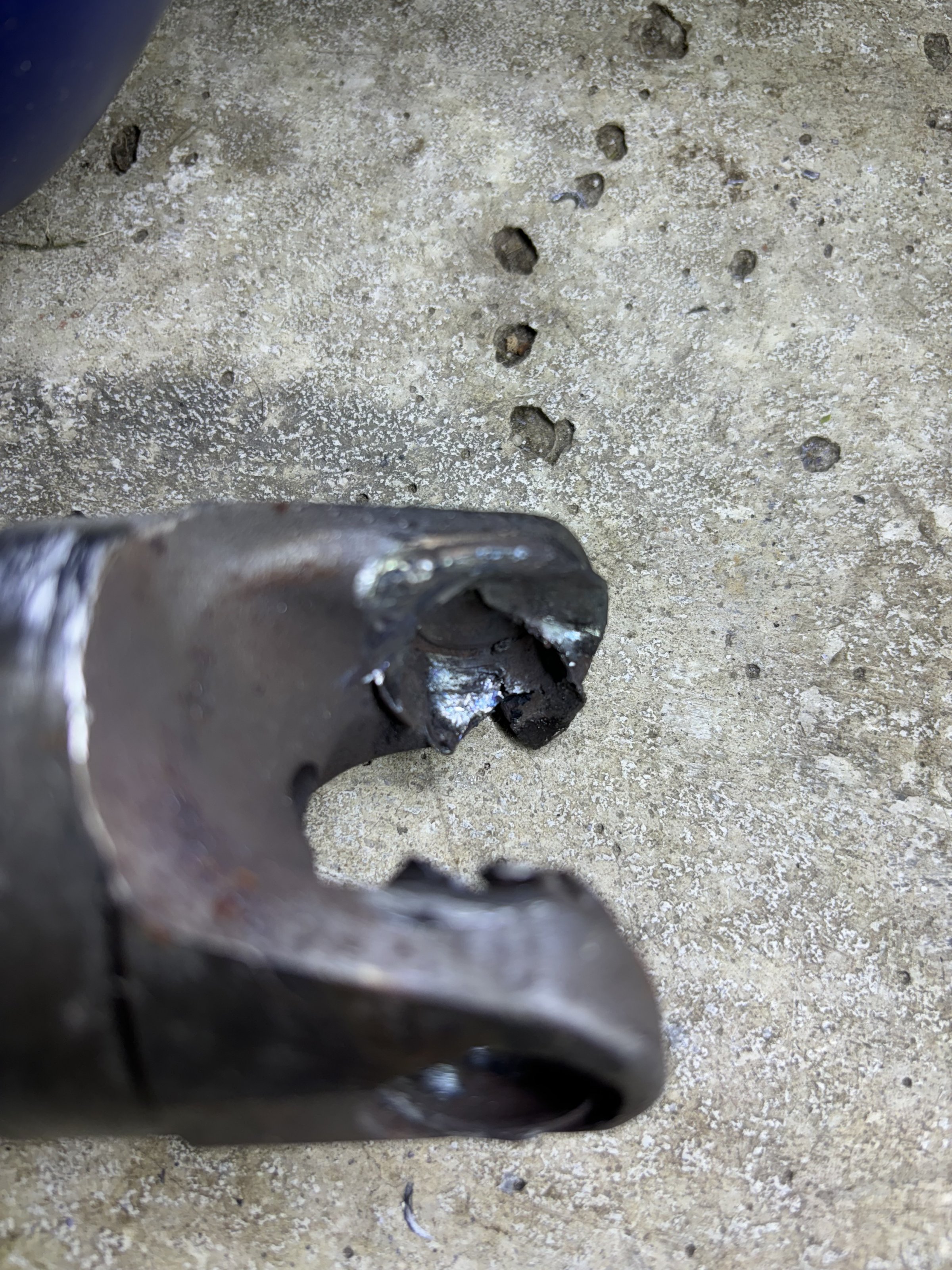 Sieht so aus als hätte die Gelenkwelle den Schwingenholm innen stellen- bzw. zeitweise berührt / gestreift. Eventuell wurde dort Material abgetragen?