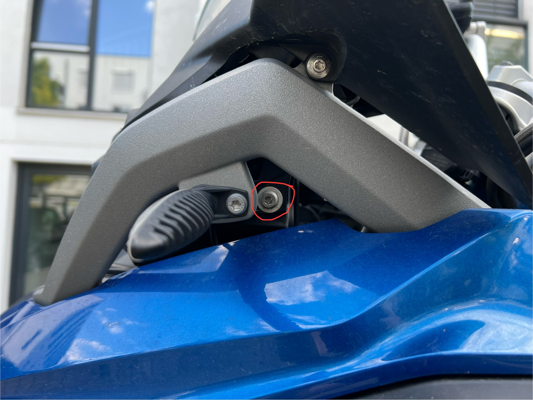 Mir hat der originale Scheinwerferschutz von VW bei meiner R1200GS Rallye (Bj. 2017) mit LED Scheinwerfern nicht so gut gefallen, also habe ich mir eine Alternative von Touratech angeschafft, die ich gestern "mal eben" montieren wollte. Leider bin ich kläglich gescheitert. Konkretes Problem war, dass ich Schrauben die seitlich in den Scheinwerfer gehen (schräg hinter den Blinkern) nicht los bekomme. Das Gegenstück scheint eine Art Gummiummantelung zu haben (s. Fotos). Wahrscheinlich zur Schwingungsdämpfung. Wenn ich die Schraube drehe, dreht sich das Gegenstück mit und der Versuch das Gegenstück mit einer Flachzange festzuhalten führte nur dazu, dass es jetzt deutlich weniger neu aussieht