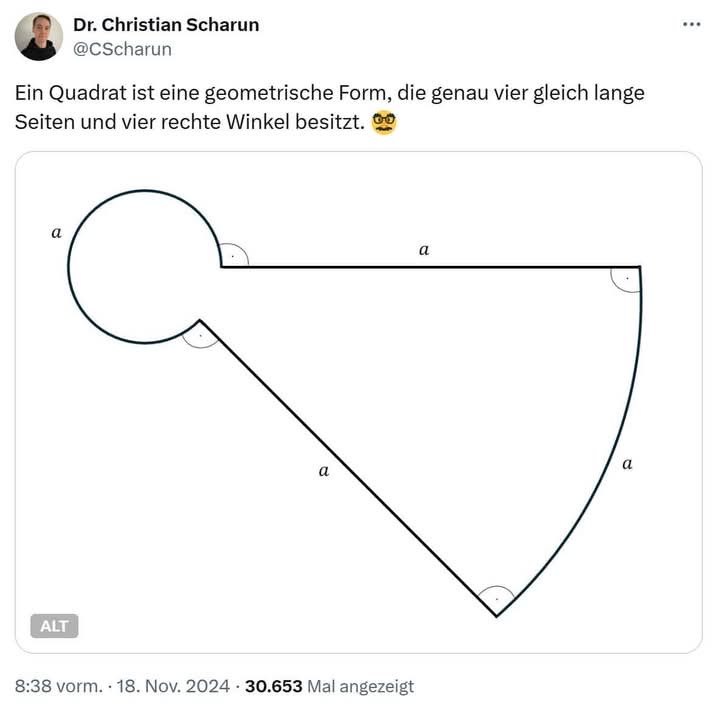 Direkt in der Ecke, ganz direkt - funktioniert verm nur für Mathematiker der Witz, auch eine "Seite" würde Ließchen Müller anders(t) definieren als der Dr.