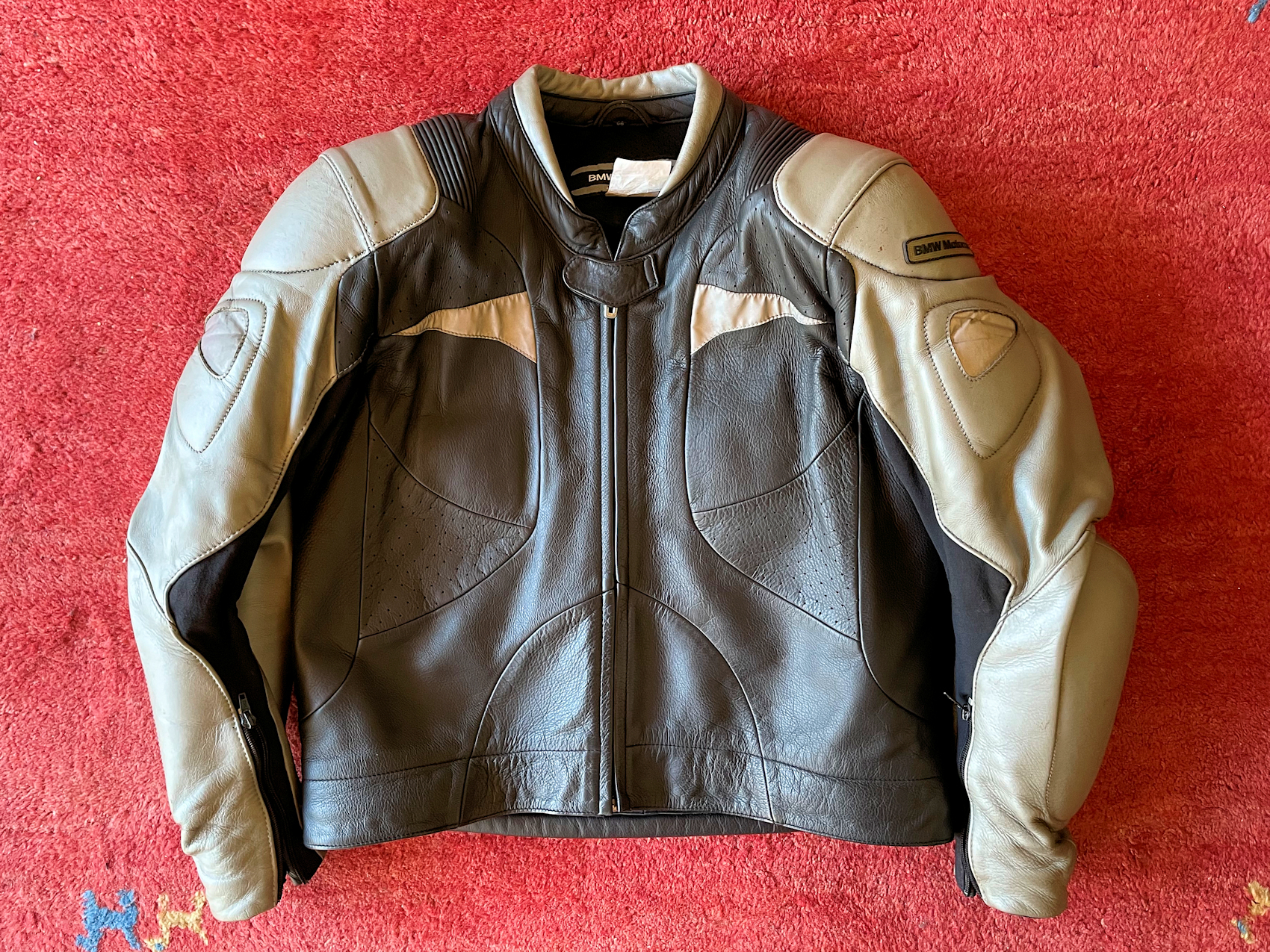 Daher verkaufe ich meine klassische BMW-Lederkombi ProRace (für Touren und sportliches Fahren super geeignet - hatte bis vor kurzer Zeit eine BMW R 1200 ST). Das ist ein Zweiteiler, Jacke und Hose werden mit einem umlaufenen, schweren Zipper verbunden. Protektoren an Schultern, Rücken, Ellenbogen, Oberschenkel und Knie. Stretcheinsatz im Schritt; Reflektoren am Oberkörper; Farbe: silber/schwarz.