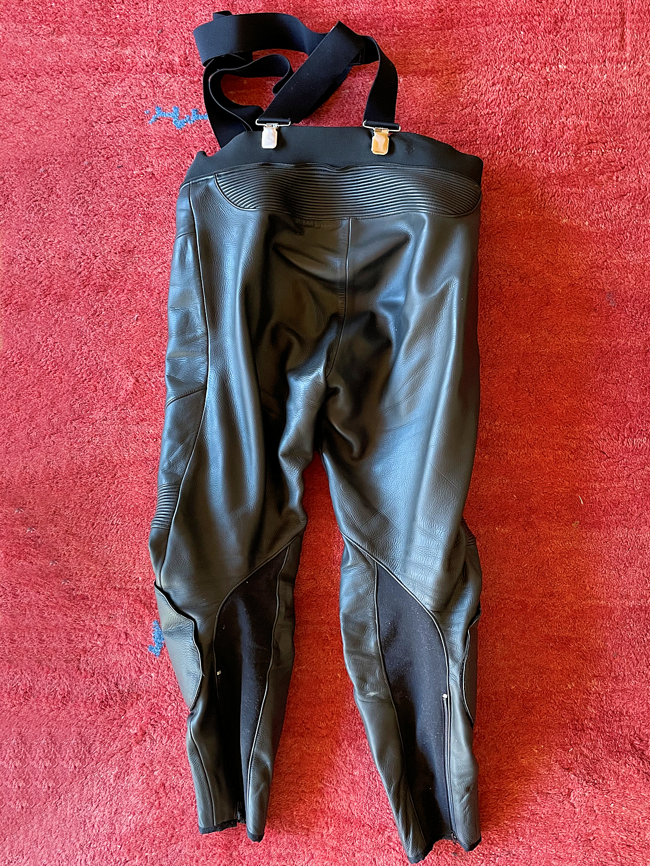 Keine Schäden, keine Risse, keine nennenswerten Abschürfungen, kein Sturz, nur normale Gebrauchsspuren, Reißverschlüsse alle okay, immer gut gepflegt – kein intensiver Männerschweiß ;-) Bitte Fotos anschauen – natürlich wird das Mopped nicht mitverkauft ;-) Bei Bedarf auch weitere Bilder.