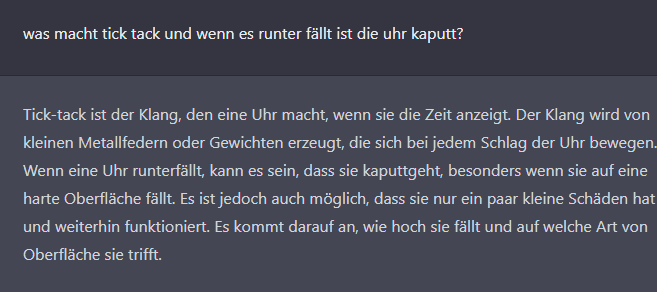 Der 2-3 jährige Mensch dem man den "Witz" mit der Uhr erzählt, wird vielleicht auch keinen Witz erkennen und ernsthaft antworten. Er ist trotzdem intelligent.