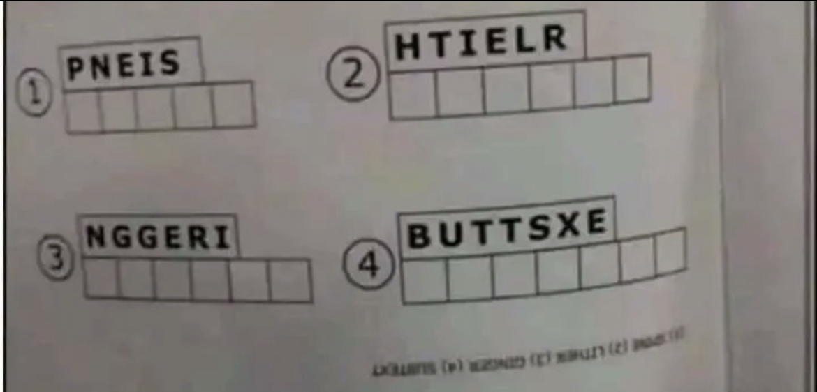 So zwischendurch: Gesucht sind die englischen Wörter, deren Buchstaben hier durcheinander geraten sind.