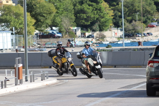 Was mir aufgefallen ist, das waren die kroatischen Motorradfahrer - komplett schmerzfrei und anarchisch. Mit einer Tuono mit offenem Auspuff im zweiten Gang voll in den Begrenzer? Auf den langen Ausfallstraßen in Split kein Problem. In der Tempo-80-Zone mit 150 im Slalom durch den Verkehr? Warum nicht? Auch die im Süden gern gefahrenen Maxiroller lassen sich durch einen Akrachowitsch "Balkan-Edition" problemlos zu Lärmquellen der Megatonnen-Klasse aufrüsten. Ob sie dadurch schneller werden als ohnehin schon, kann ich nicht beschwören. Ob die vielen Risse in den Fassaden der Häuser an den großen Straßen allerdings wirklich vom letzten Erdbeben oder gar noch vom Balkankrieg stammen - angesichts der Lärmkulisse drängen sich andere mögliche Ursachen auf.