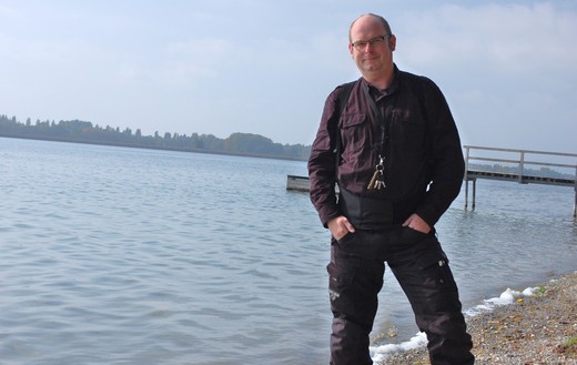 Mittlerweile wärmt die Sonne so sehr, dass ich auf den Pullover unter der Motorradjacke verzichten kann. Nach einer eindrucksvollen Fahrt mit viel Kurvenspaß finde ich zufällig eine Liegewiese am Rand von Radolfzell, die direkt am See liegt. Die Wiese ist gut besucht und wenn die Temperaturen zwar nicht mehr für den Badeanzug reichen, herrscht doch immerhin T-Shirt Wetter. Damit ich auch einmal auf einem Foto zu sehen bin, benutze ich ungewohnter weise den Selbstauslöser meiner Kamera. Auch so eine Sache, die das alleine Reisen mit sich bringt.