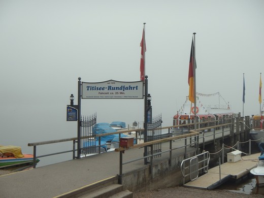 Ein wenig genervt und mit vielen kleinen Wassertropfen auf Brille und Visier erreiche ich Titisee-Neustadt. Ein schöner, aber auch sehr touristischer Ort. Anders lässt sich nicht erklären, warum die meisten Schilder an den Geschäften und Hotels nicht nur auf deutsch, sondern auch auf englisch angebracht wurden. Vom See sehe ich...nichts...absolut nichts. Der Nebel hängt so dicht über dem Wasser, dass man keine 5 Meter weit sehen kann. Später erfahre ich aus dem Internet, dass der Titisee 1,3 qkm groß und im Schnitt 20 Meter tief ist. Ganz schon imposant für einen See, der sich heute morgen vor mir versteckt.