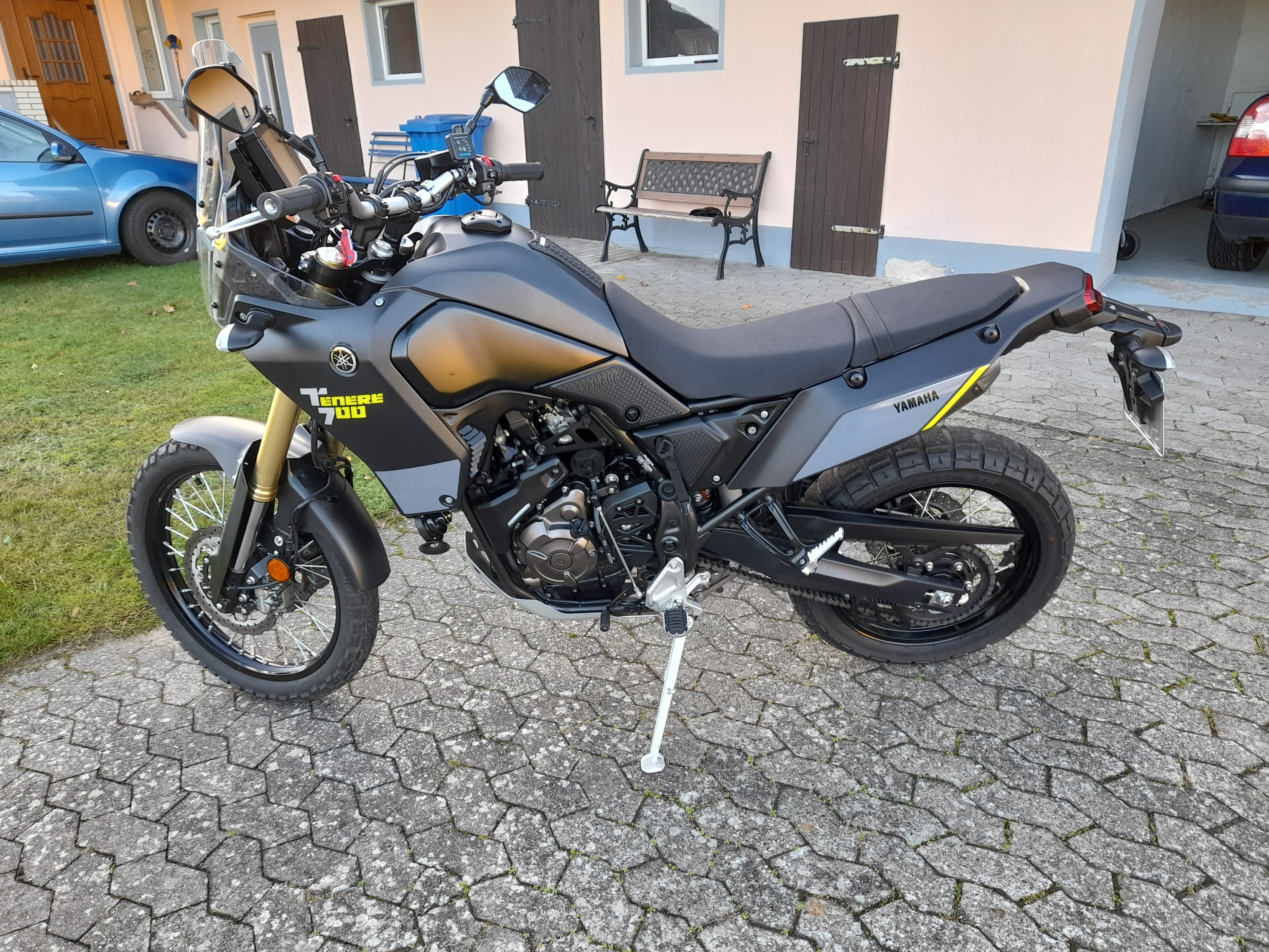 Im Internet gibt es sooo viele "best practice" Beispiele für die Ténéré, dass man darob das Fahren vergessen könnte. Den Satteltrick hab ich auch gesehen, denke aber, dass eine festere Verbindung wohl irgendeinem Sinn entspricht, der sich mir noch verschliesst. Und da ich ein "Rack" verbauen werde, muss ich mir das dann im Kontext genauer anschauen.
