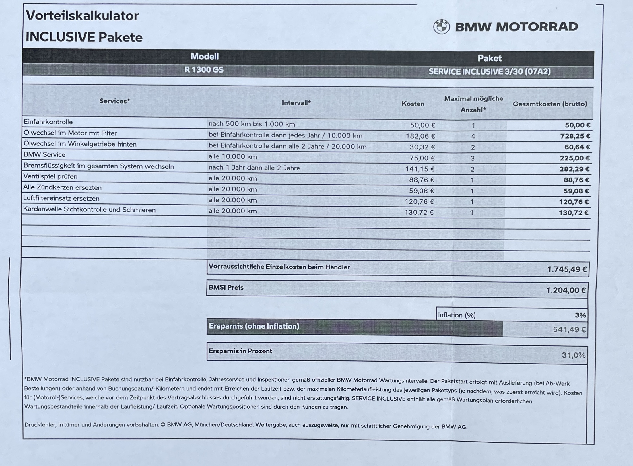 für max 3 Jahre bis max 30.000 km für die R 1300 GSA" ?