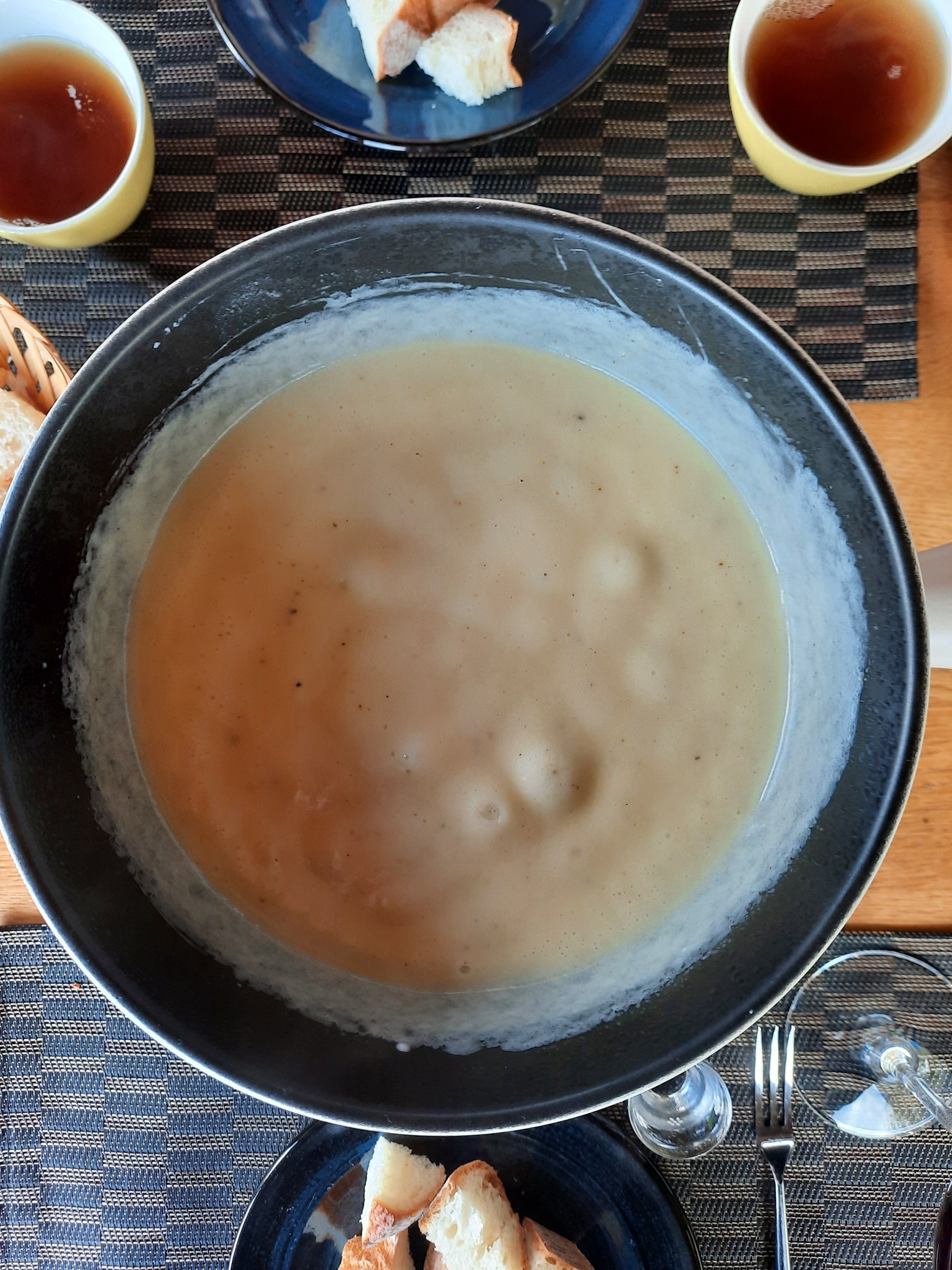 Wir haben gerade eine ganz feine Käsesuppe genossen: