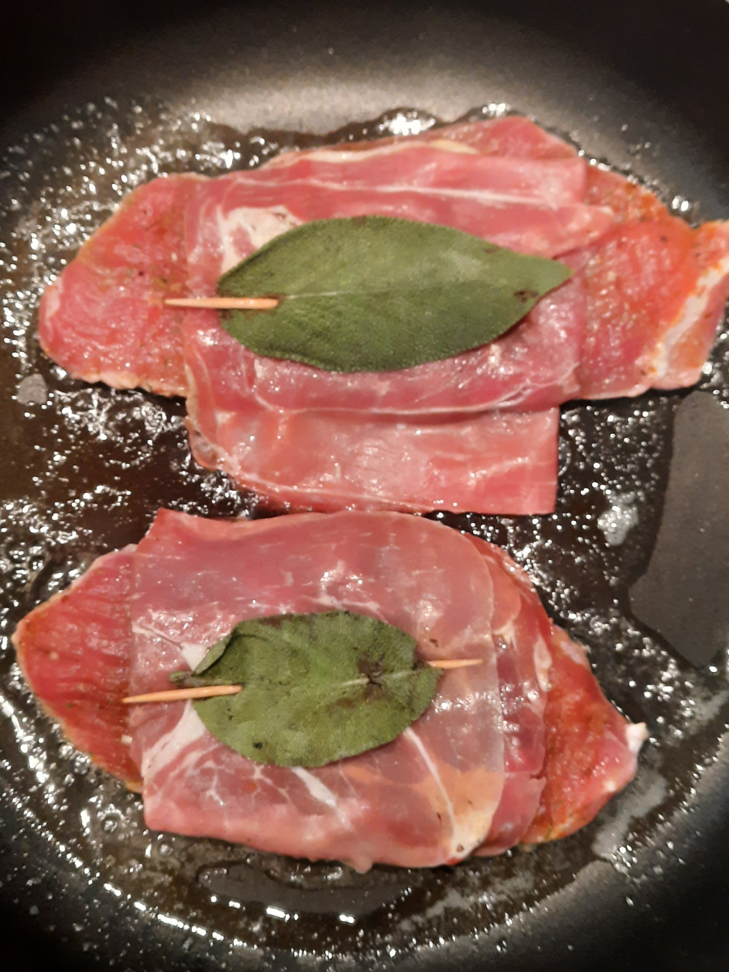 Parallel dazu die übrig geblieben Saltimbocca vom Samstag gebraten.