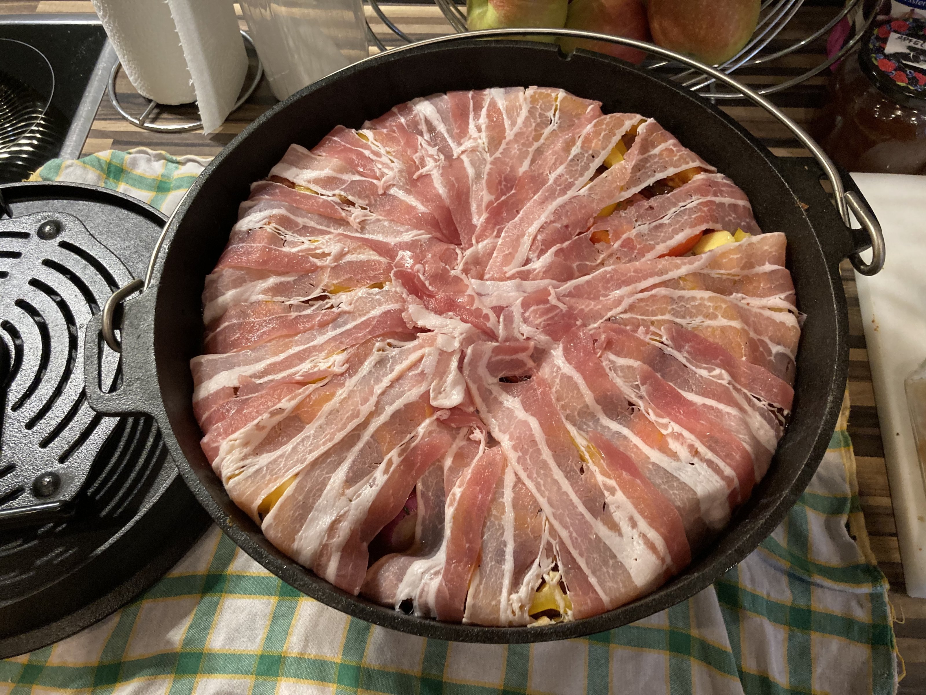 Dann wieder Gemüsebrühe und Rotwein als Fussbad, und "On Top" vor dem zuklappen noch den Rest der Paprika aufgelegt. Keine Gefangenen, eehhh Reste.