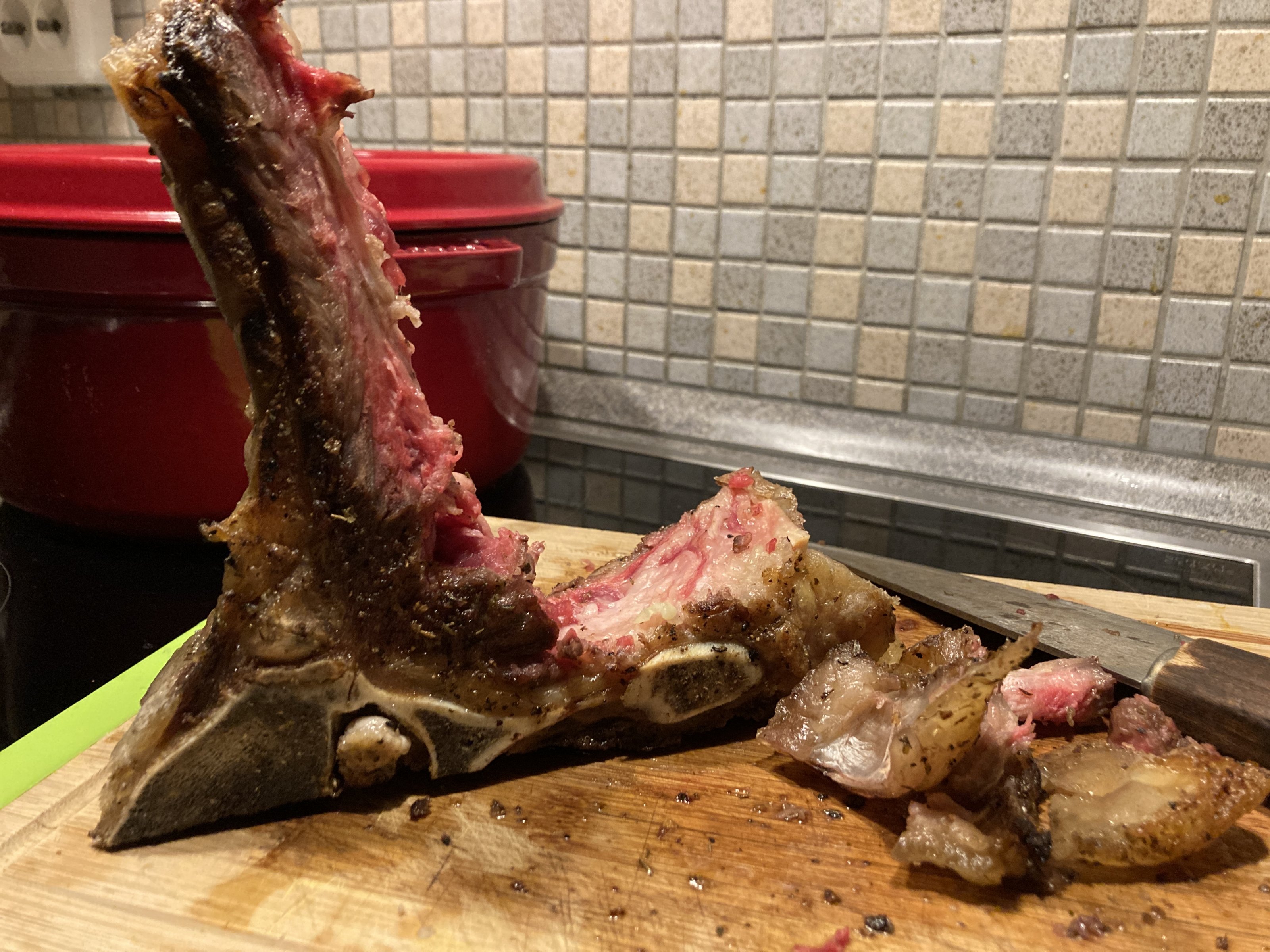 Das war sicher superfein, so wie der Knochen aussieht !Bei 1130g bleibt nicht viel übrig vom. Aber alle sind satt ( vom Brot) und ich vom Steak