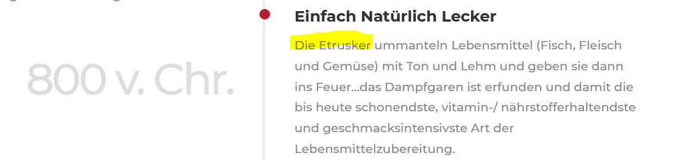 dass die Etrusker durch die Römer erobert wurden und die etruskische Kultur in der römischen aufging - und somit auch die Garmethode, von der man annehmen kann, dass sie auch von den Römern weitergeführt wurde.