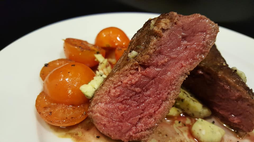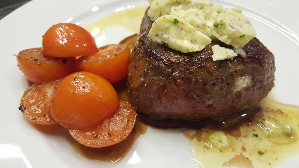 Für meine Frau eine Poulet (Hühnchen) Cordon bleu, und für mich ein Rindsfilet Steak,