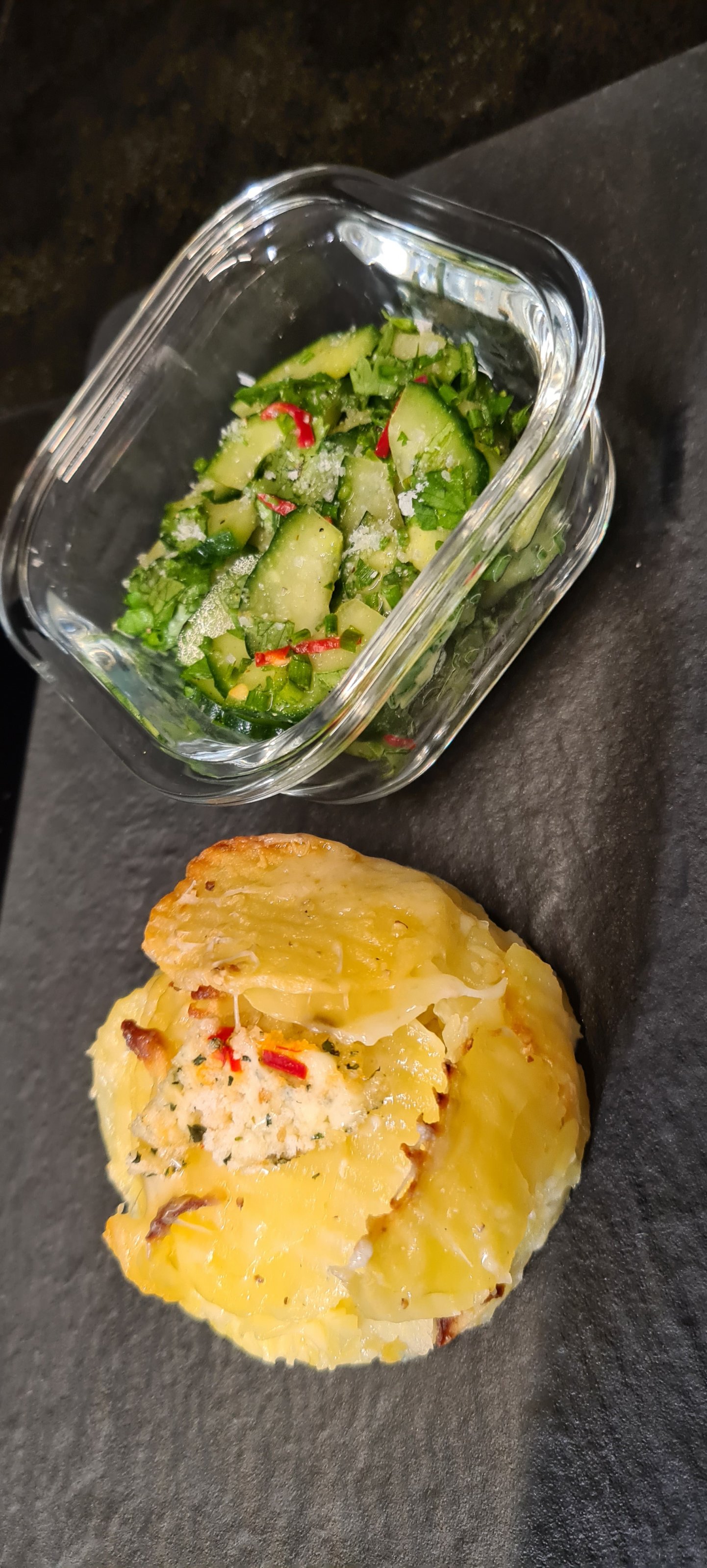 Vorneweg/hinterher/währenddessen gerne ein Kartoffelküchle mit GurkenKorianderChilli