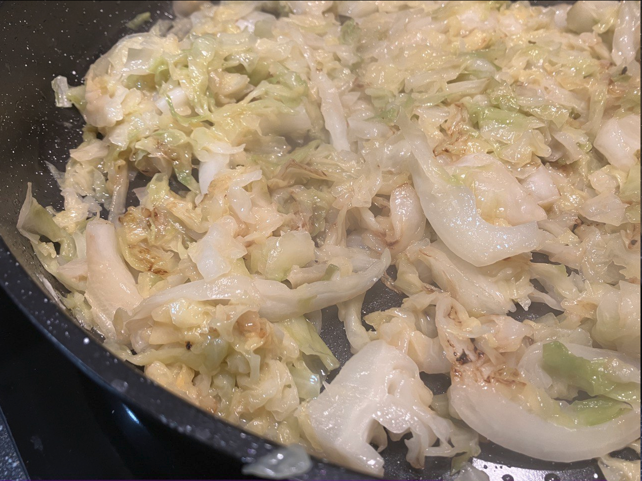 dem anbräunen - so ca 4min. Wenn das Wasser dann weg ist, ist der Kohl auch ziemlich geschrumpft.