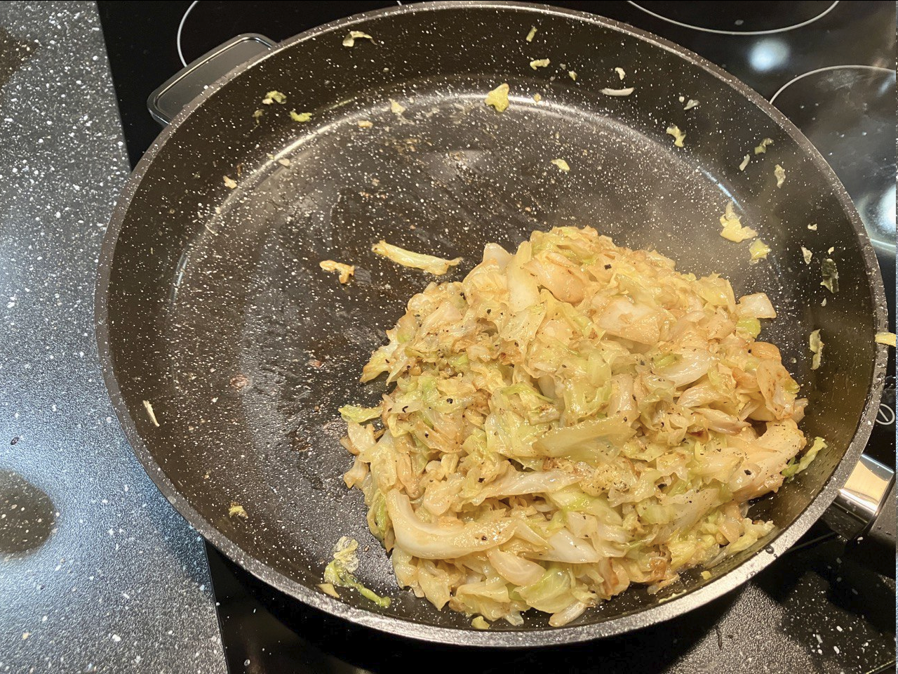 *hier wäre nun die Möglichkeit bei kleiner Pfanne die Portion zwischenzulagern und den zweiten Kohlteil zu verarbeiten. Wenn
