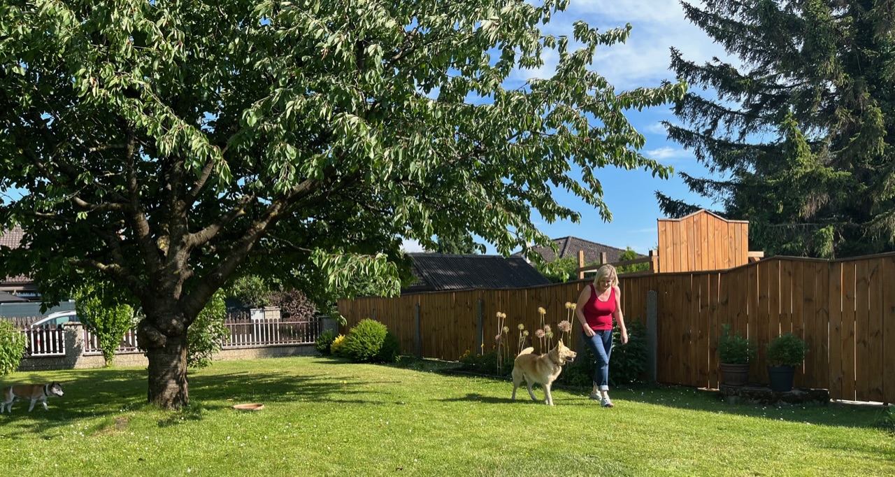 Du hast also im Haus Rasen?Im Haus Rasen gemäht und die Hunde im Garten bespaßt, jetzt wieder zurück auf Balkonien, eingroven, Gäste kommen erst um acht