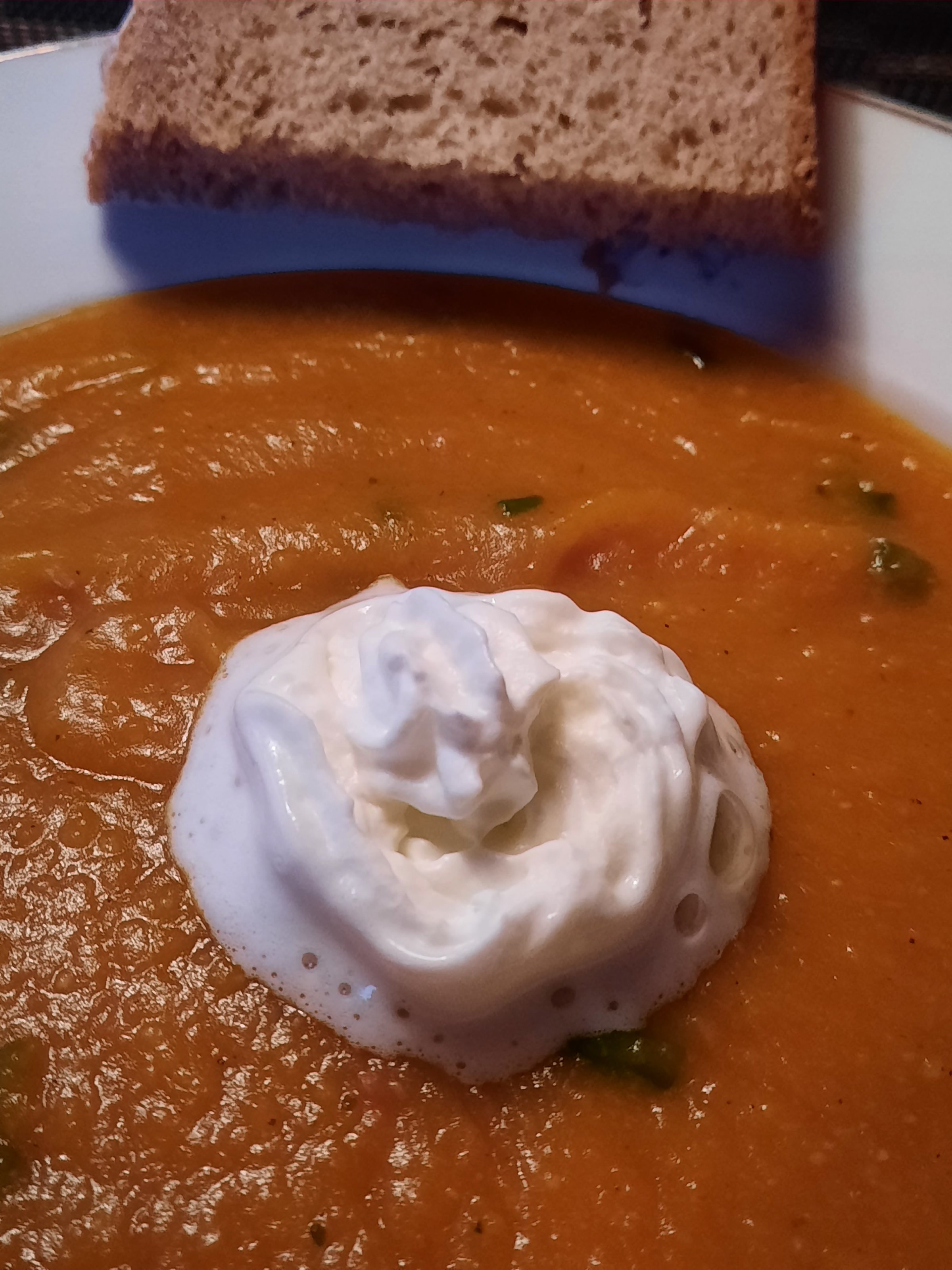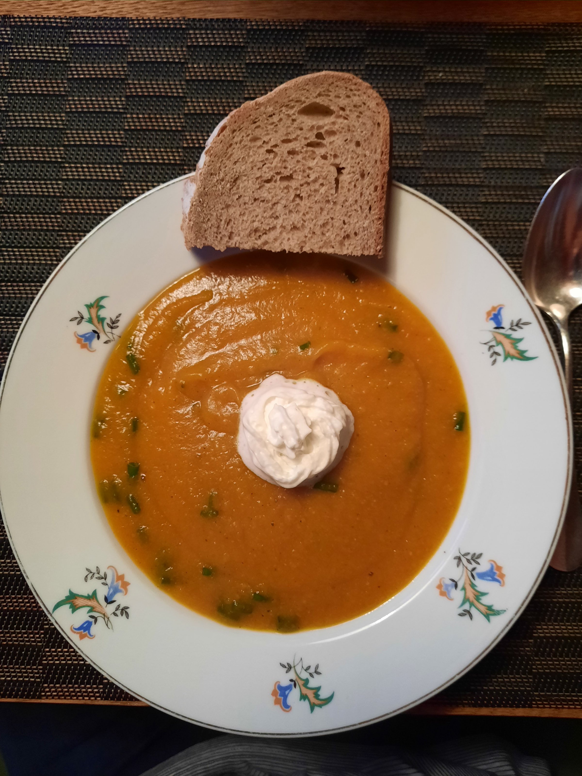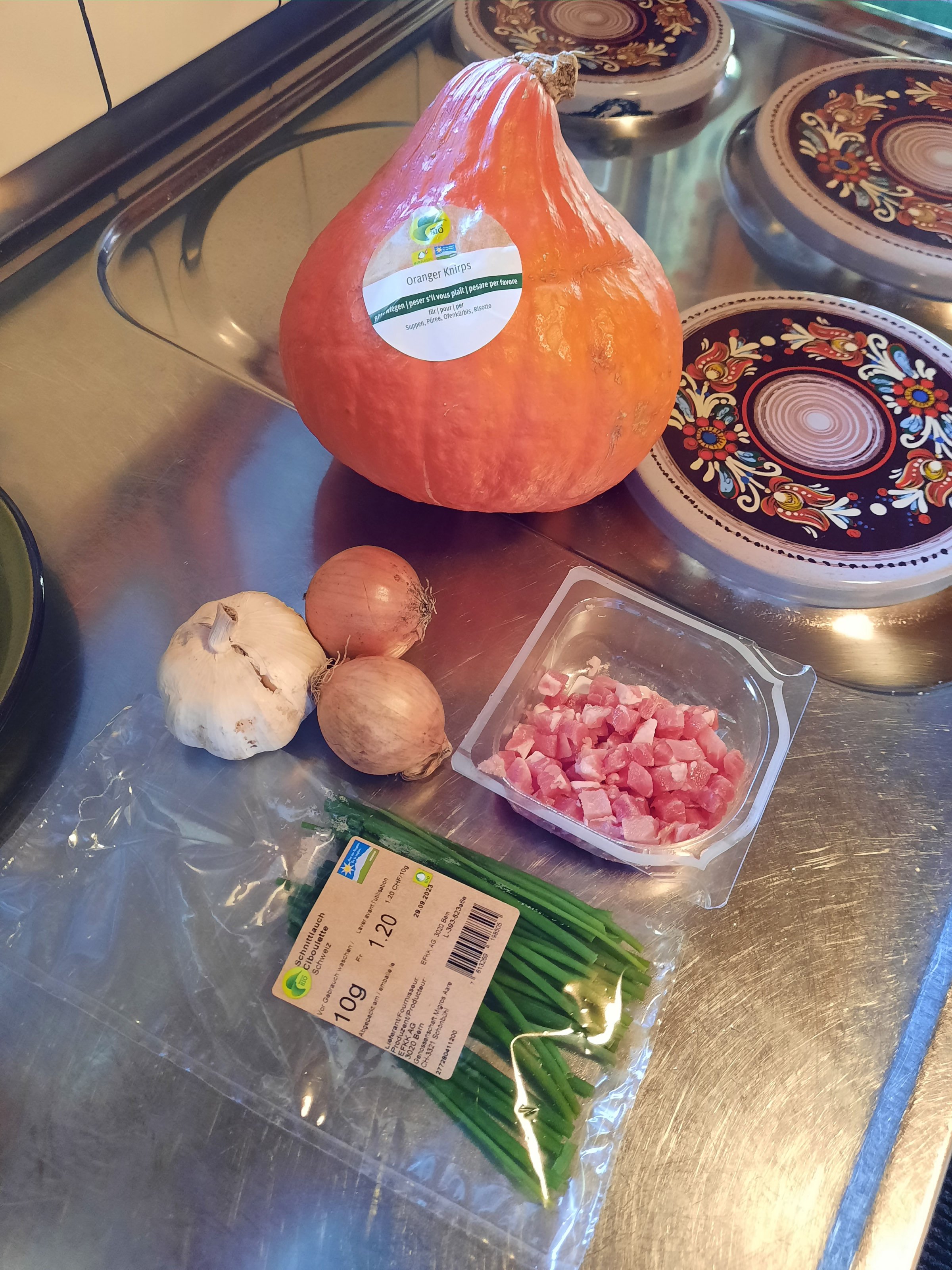 Och nee, nicht schon wieder Kürbissuppe, und dann noch mit Knoblauch, Zwiebeln, usf.Salü