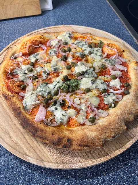 Jetzt liegt er marniert bis morgen im KS, dann wird er gefüllt, und kommt dann "gemütlich" auf den Grill.