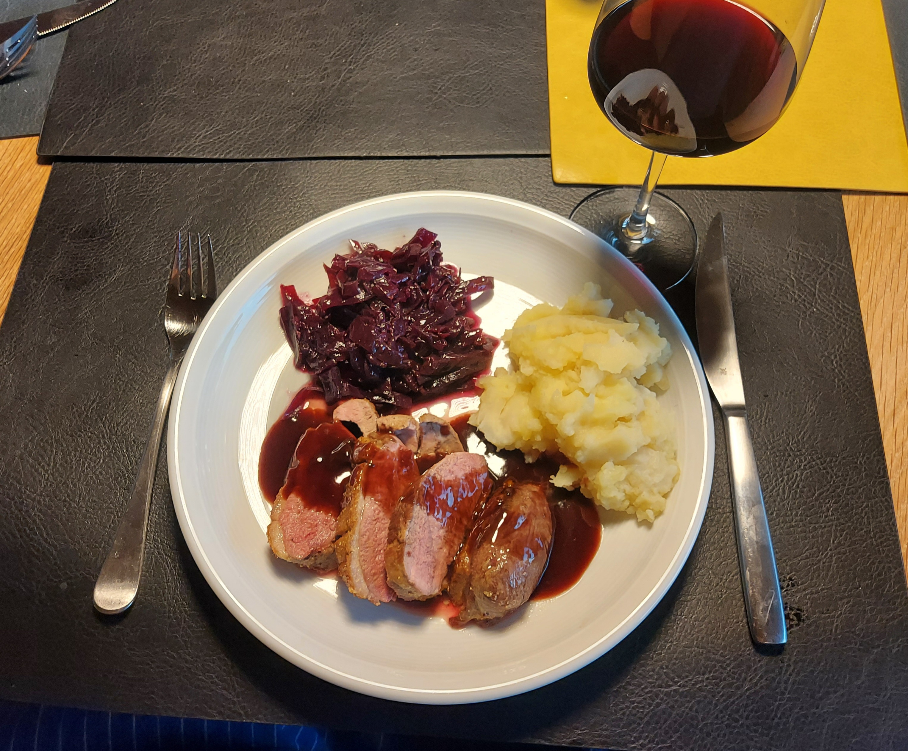 Helmut Metzger aus Walsheim? Er selbst noch oder vom Sohn und Schwiegertochter?Heute lief uns eine Ente über den Weg. Dazu gab es eine Rotwein-Honig-Balsamico-Sauce, Rotkohl und einen Kartoffel-Sellerie-Stampf: