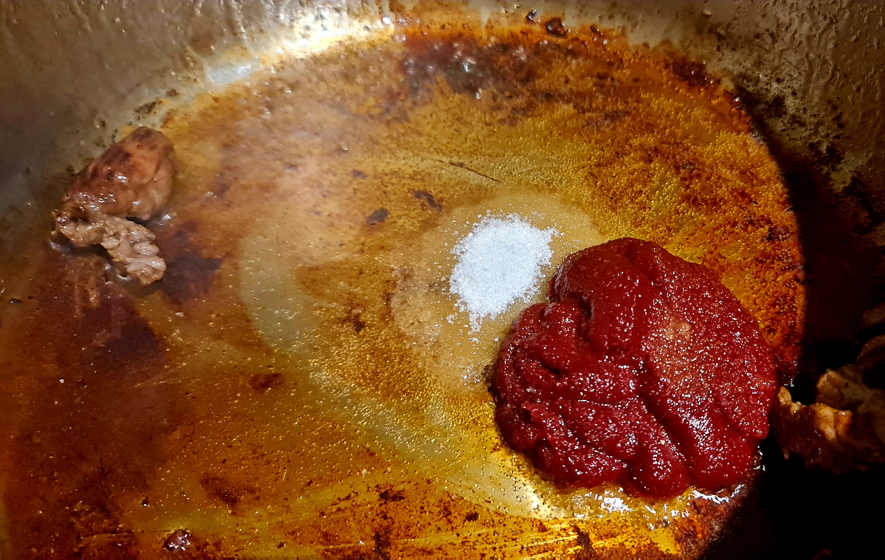 Bodesatz mit etwas Zucker und Tomatenmark anschwitzen... einreduzieren und mit 🍷 angiessen.