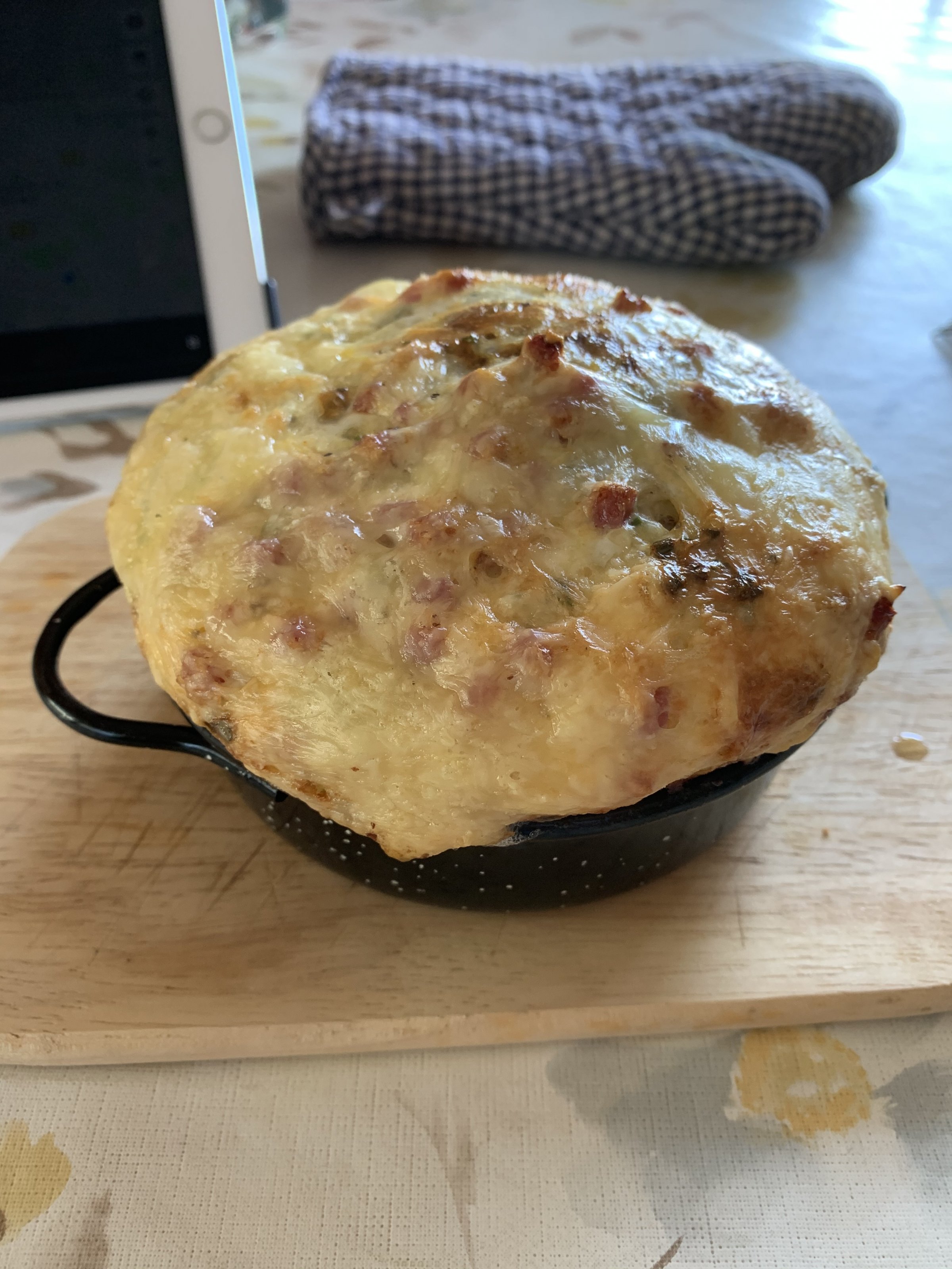 Diskutiere Der Yammithread für Foodblogger, hungrige und Hobbyköche im Smalltalk und Offtopic Forum im Bereich Community; Ein schnelles Bauerntöpfchen aus dem Kugelgrill: Toast, Eier, Speck, Emmentaler, Gewürze, Schnittlauch