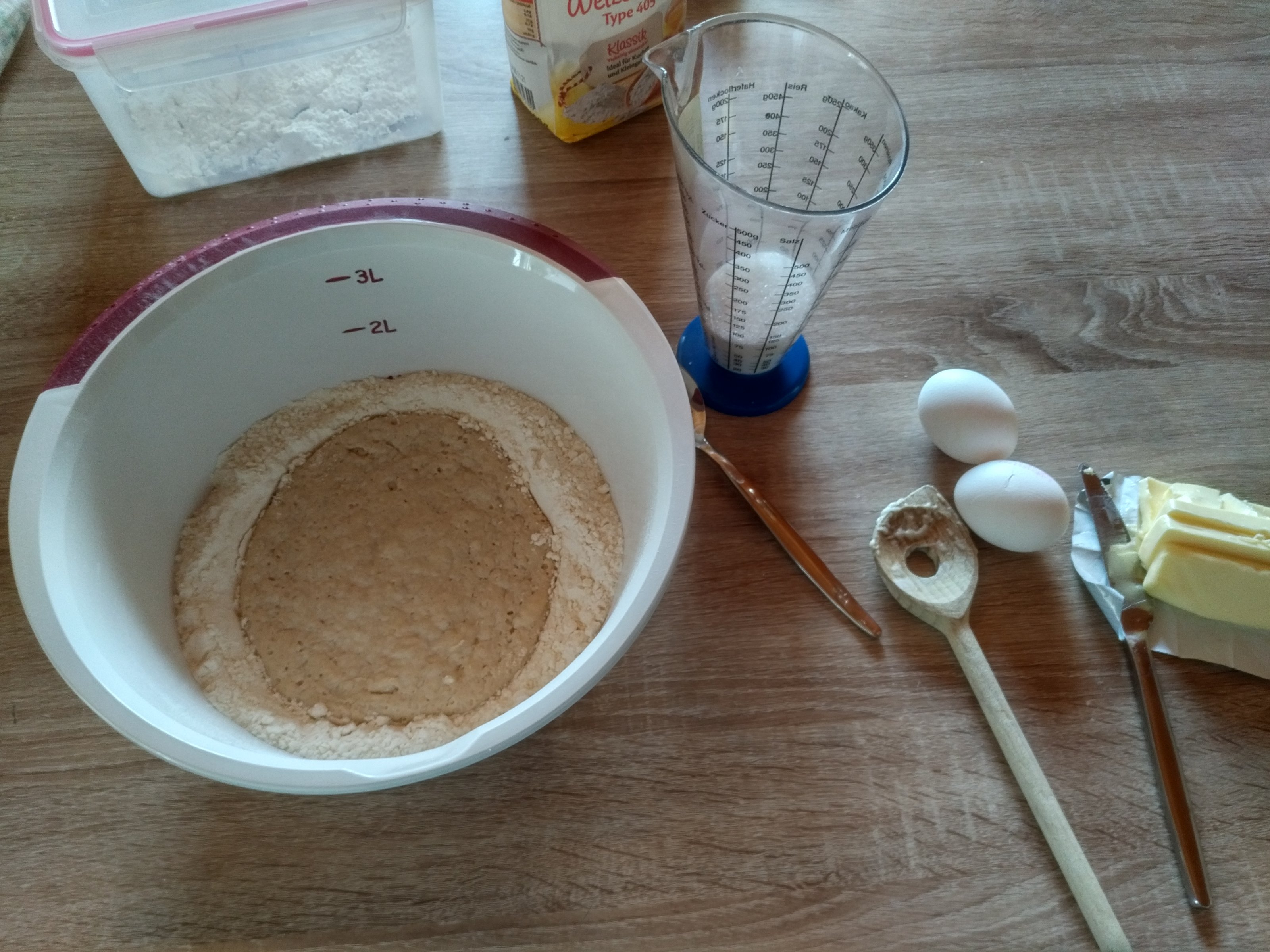 Zwetschgenkuchen gibts heute nachmittag auch, den macht aber meine Frau, ich kann nicht backen, außer Quiches