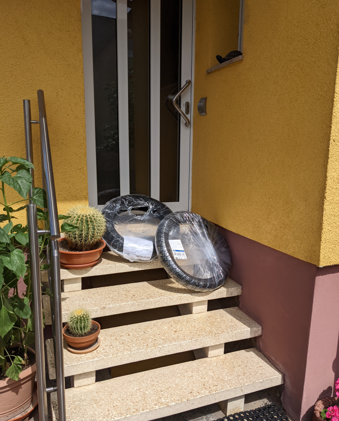 Mein DHL-Paket, für gestern angekündigt zwischen 14:45-16:45 konnte gestern nicht mehr zugestellt werden. Für heute gab's keinen Zeitrahmen, es kam um ca. 18:00, zusammen mit einem zweiten Päckle für mich, sowie einem für die Nachbarn (nette Menschen, die nicht mehr Taliban heißen, aber immer noch so aussehen :D). Alles gut, der Fahrer -ich habe ihn noch nie gesehen, wohl wieder ein "Neuer"- war freundlich, aber in Hektik, und ganz offensichtlich erleichtert, als ich mich bereit erklärte, das Paket für die Nachbarn auch anzunehmen.