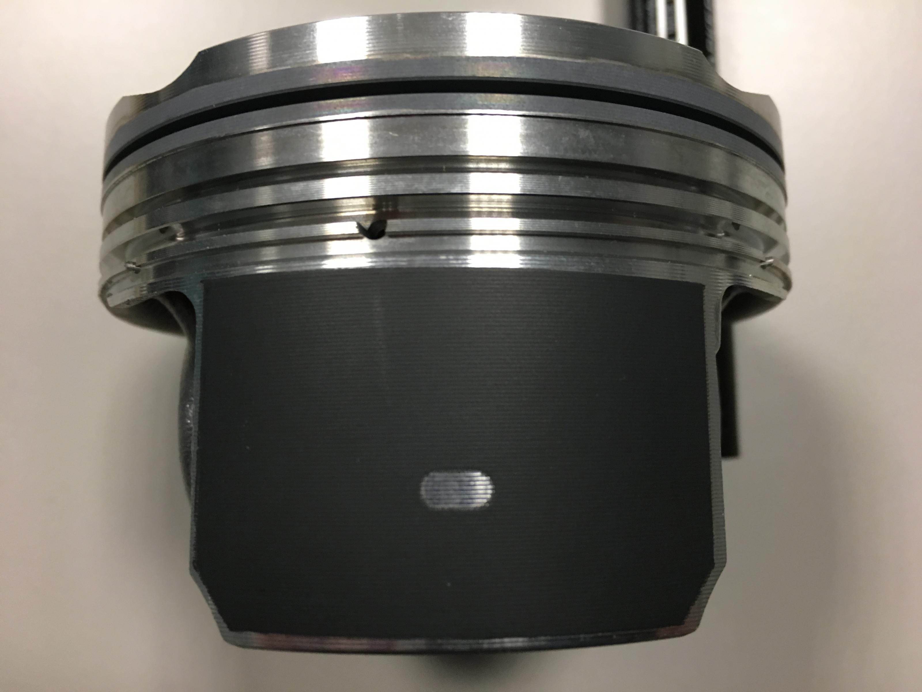 Die Kolben zeigen absolut keinen Verschleiß!! Selbst die Graphitschicht ist ohne Laufspuren. Bild 1 zeigt den Kolben aus der Testmaschine. Bild 2 zeigt einen neuen Kolben (kein BMW Motorradkolben) wie er ausgeliefert wird.