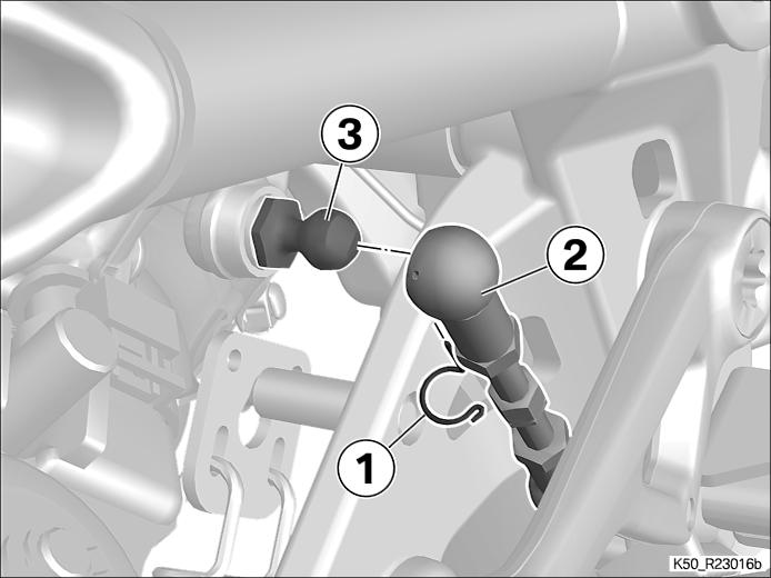 Nachdem ich meine Fußrasten etwas tiefer gelegt habe (siehe auch Klick), musste ich den Fußschalthebel noch anpassen. Durch Lösen von (1) und Drehen von (2) (siehe Bild) also den Fußschalthebel etwas abgesenkt: