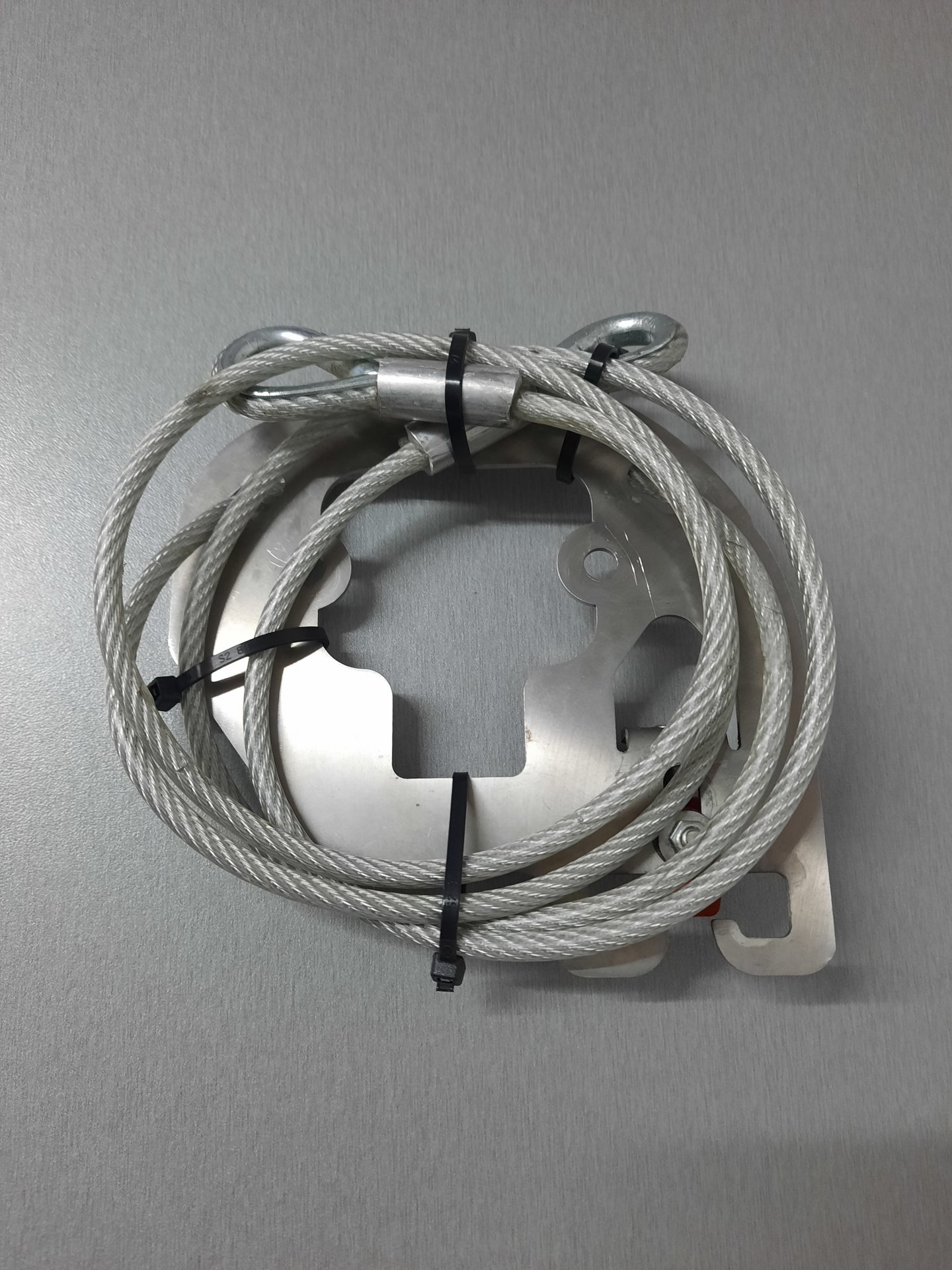 Es handelt sich um einen Diebstahlschutz von Wunderlich für den Soziussitz. Er wird unter dem Sitz mit den vorhandenen Schrauben befestigt und es können bis zu zwei Helme gesichert werden. Kein weiteres Schloß erforderlich. Durch die Verriegelung des Soziussitzes kommt man nicht mehr an die Halterung.