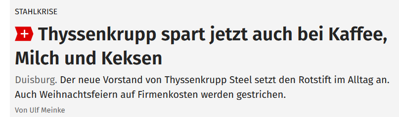 Bei Thyssenkrupp schaffen sie gerade die Kekse und den Kaffee bei den Meetings ab.
