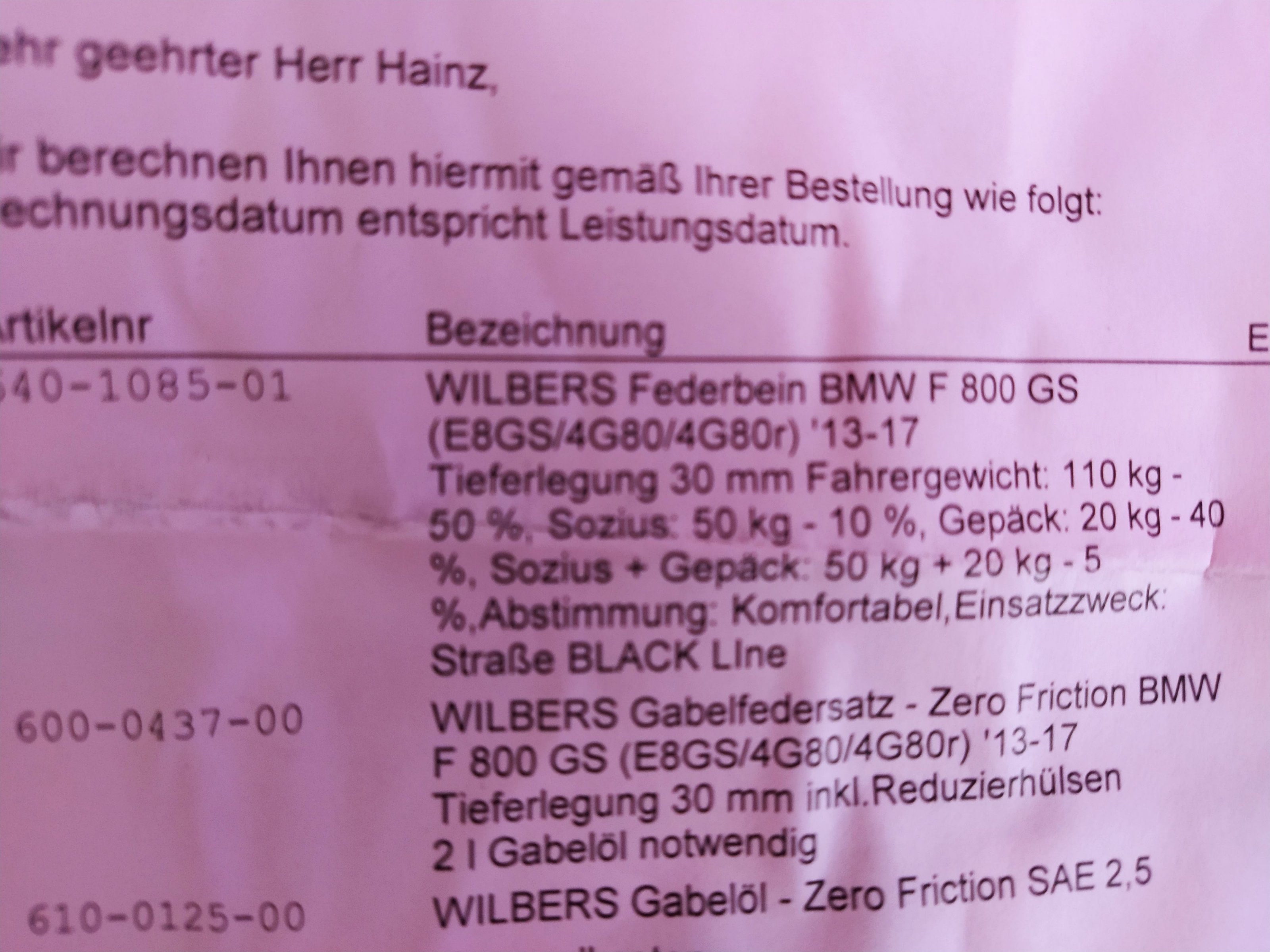 Wilbers Federbein Black Line mit Tieferlegung 30mm + passende Gabelfedern ca. 10000km gefahren 280,-