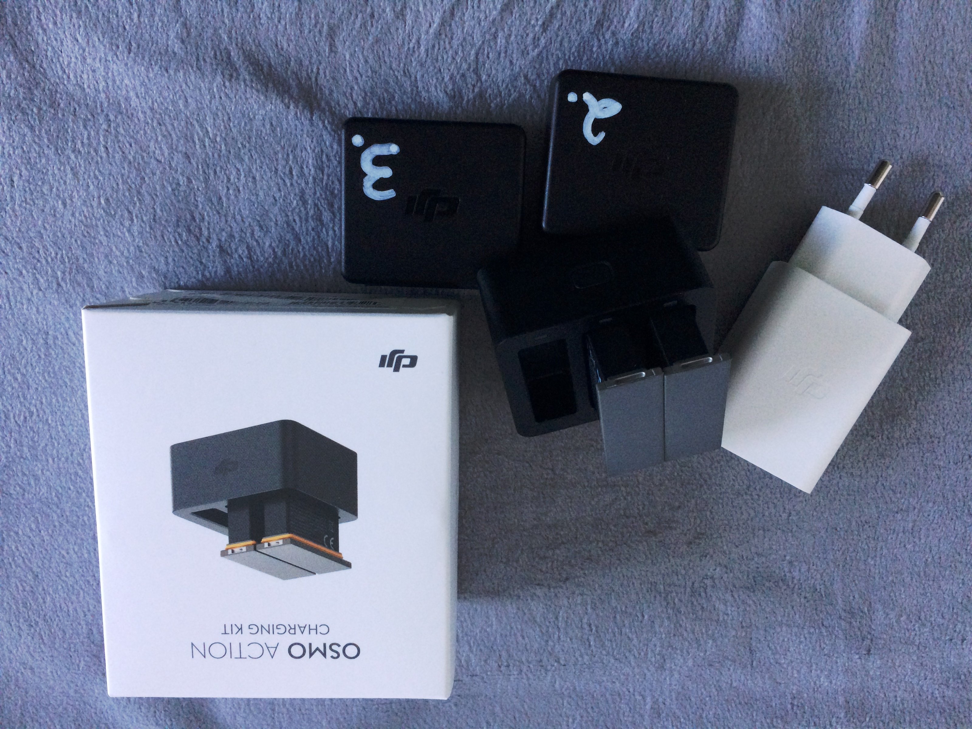 1 x Charging Kit (2 x Akku mit Hülle, Ladestation für 3 Akku, USB-Adapter)