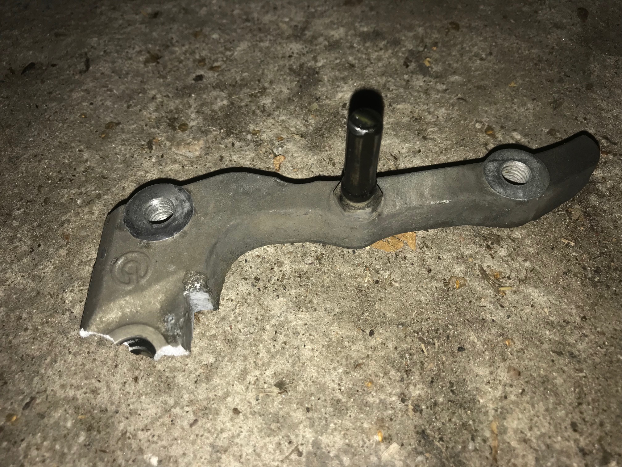 Langsam zurück geschlichen und den Schaden begutachtet. Die vordere Schraubhalterung am Hinterachsgetriebe (für den Bremssattel) ist seitlich verbogen und es hat eine Speiche komplett zerlegt und eine weitere verbogen. Der Bremssattel ist hin, ein neuer bereits unterwegs.