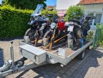 jetzt seh ich mir den Anhänger an - keine Zurrmöglichkeiten in der Mitte der Ladefläche . und 2 x KTM und 1 x ADV geht halt auch bei 4 m nicht hintereinander