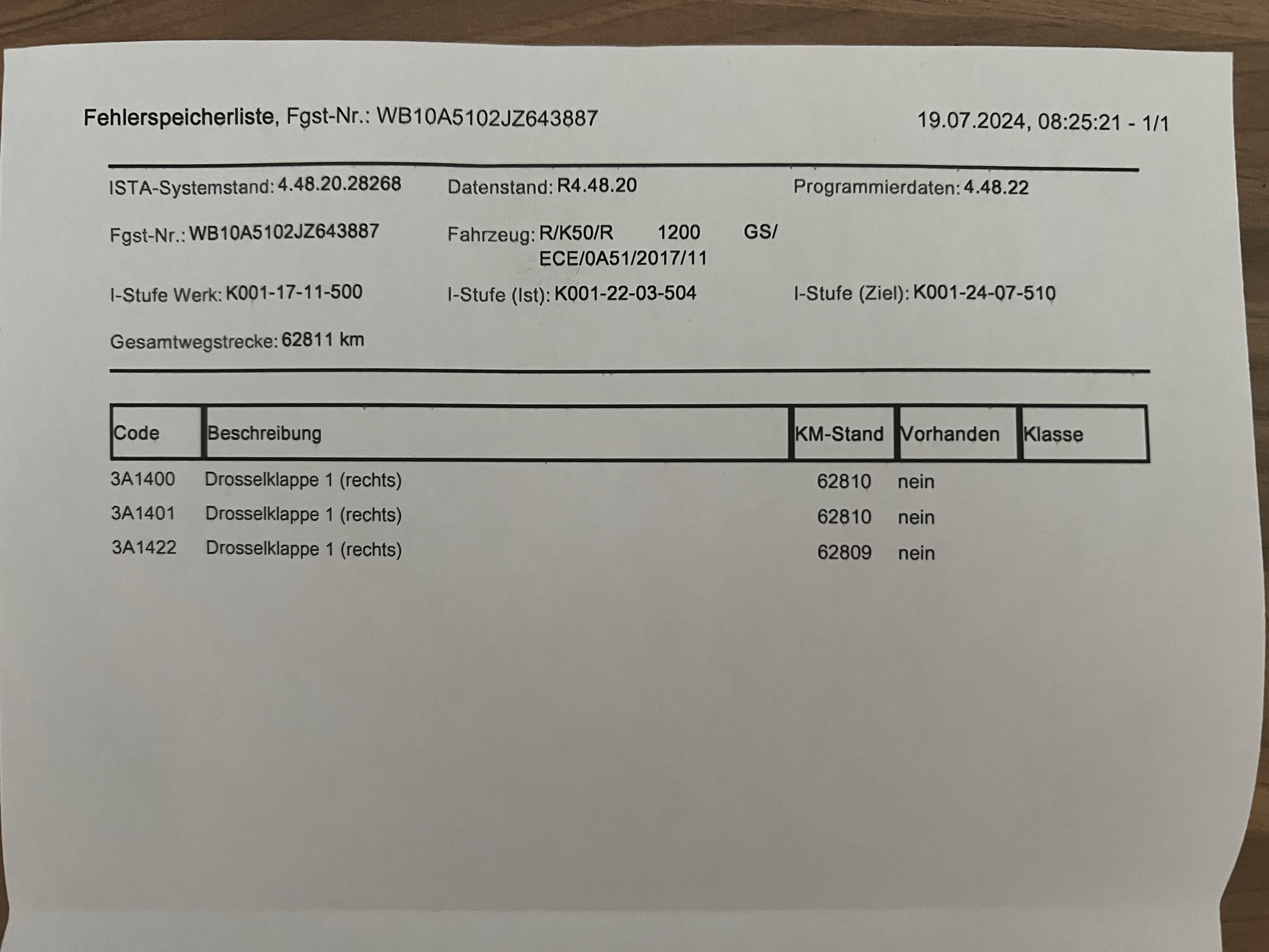 Als die Werkstatt nächsten Morgen erneut besetzt war, lief der Motor wieder problemlos. Den Fehlerspeichereintrag nannte eine Fehlfunktion der rechten Drosselklappe (s. Foto).