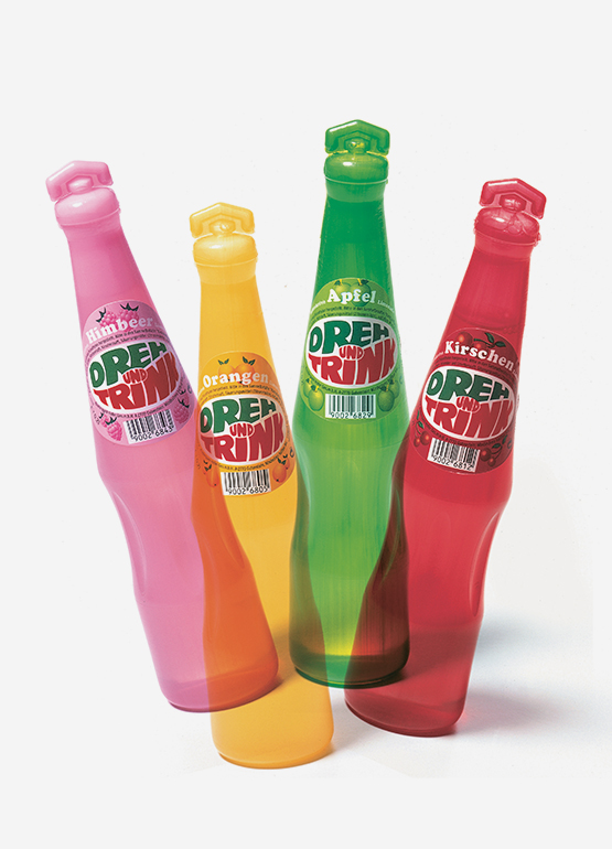 Dreh&Drink. Aromatisiertes Zuckerwasser in 0,2l Plastikflaschen, die vom Aussendruchmesser her genau in die Hand von Kleinkindern hinein designed wurden.