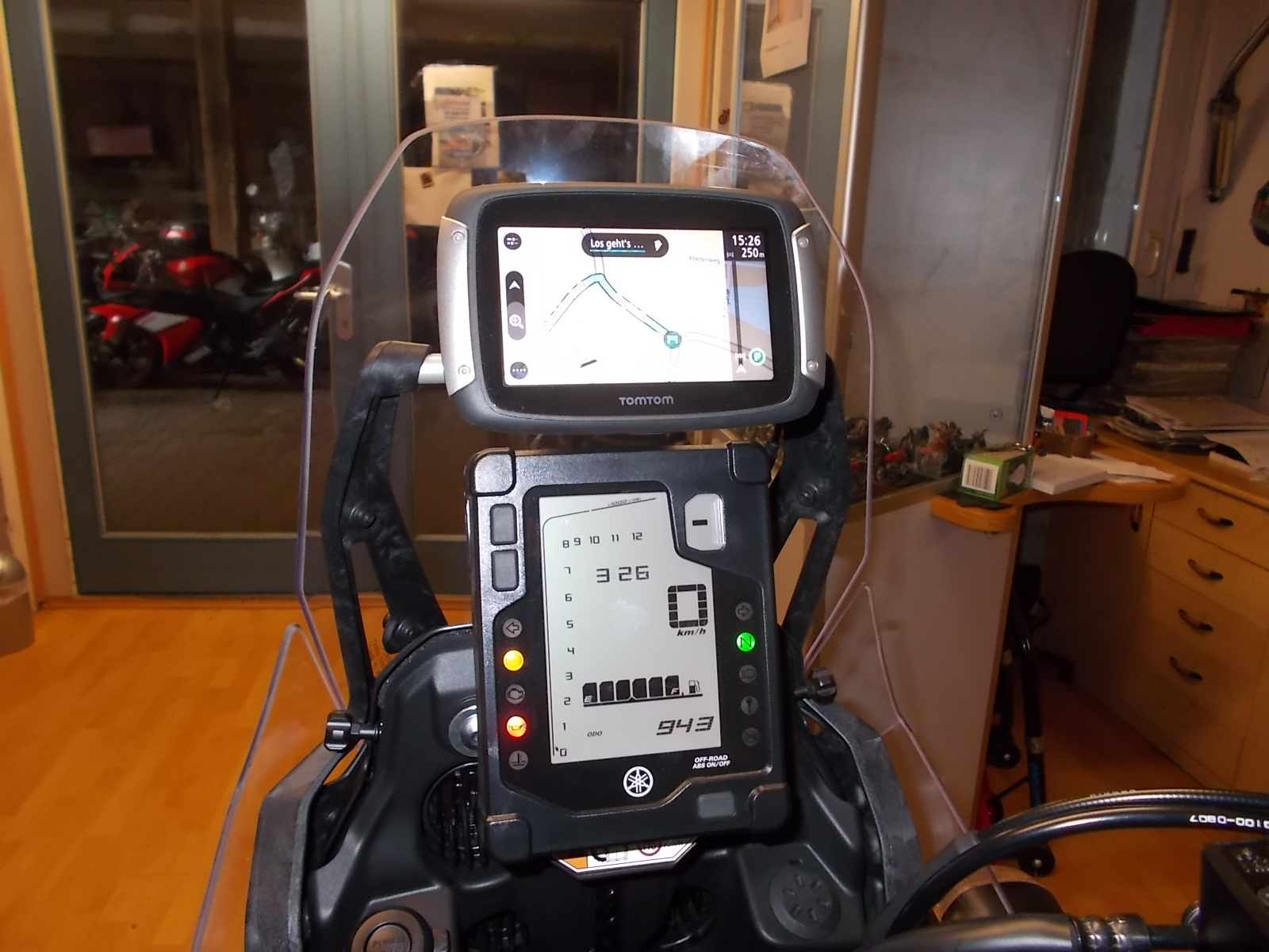 . Meine Navis sind zwar auch im Blickfeld, aber nur immer links am Lenker, keinesfalls in Fahrtrichtung! den Blick versperrend, und sie dienen hauptsächlich dazu, mir den kurzfristigen Straßenverlauf zu zeigen (man -welcher Ahnungslose auch immer das ist, weiß ja, daß man mit Harleys etwas füher bremsen muss, falls sich eine Kurve andeutet