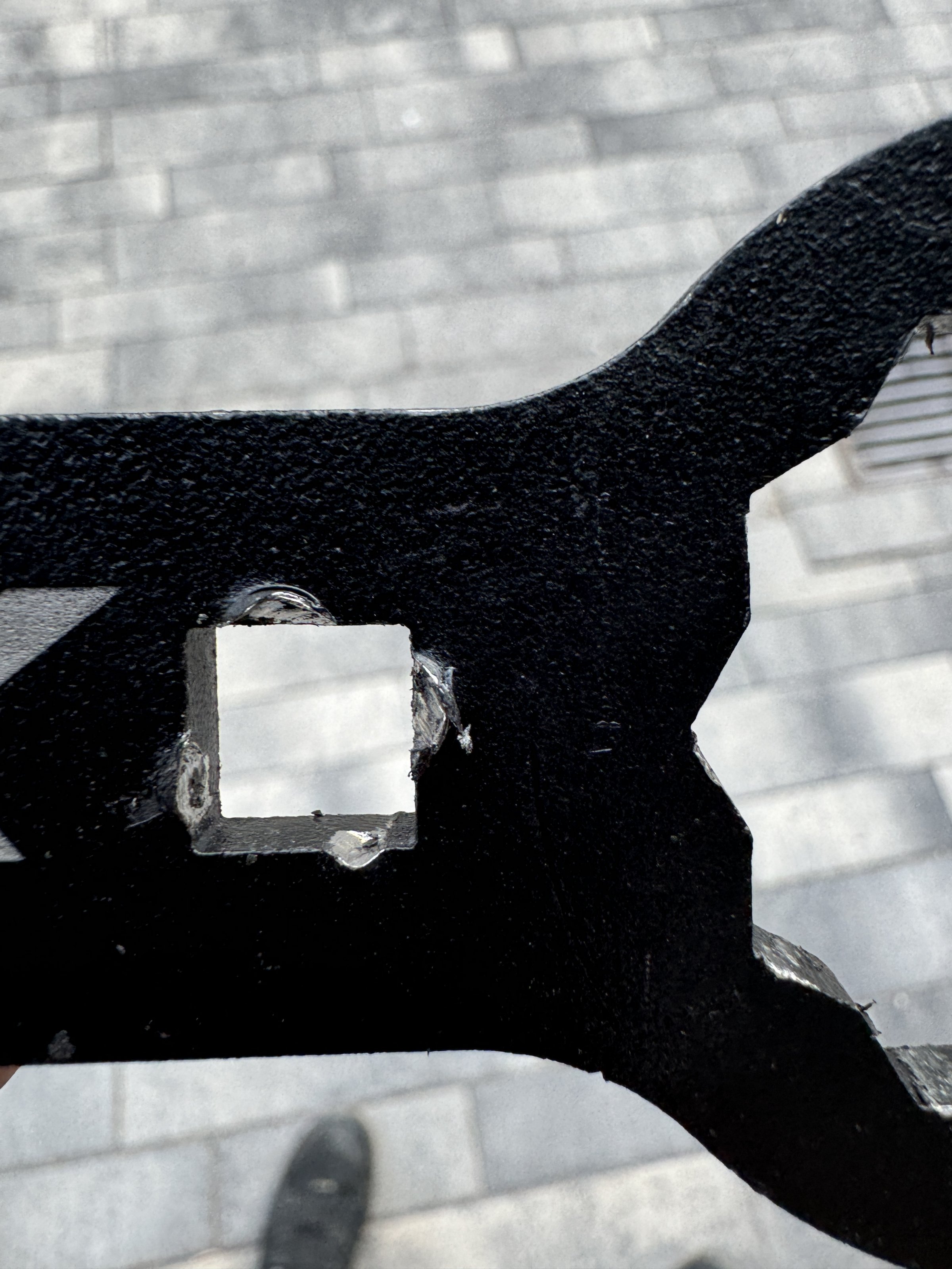 Es handelt sich bei dem Tool nicht um ein günstiges Werkzeug, Es ist das Camel ADV Werkzeug, die in der Szene nicht unbekannt sind. Die Verformungen resultieren aus der Nutzung einer Verlängerung in den dafür vorgesehenen Öffnungen. Das macht das Arbeiten deutlich leichter.