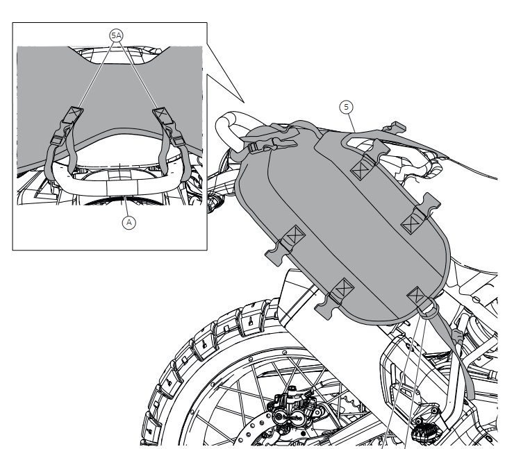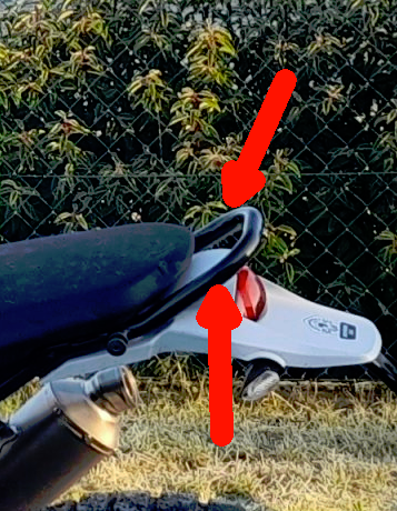 Lediglich die Zwei Riemen hinten kommen durch die riesige öffnung vom Serienbügel am Heck.