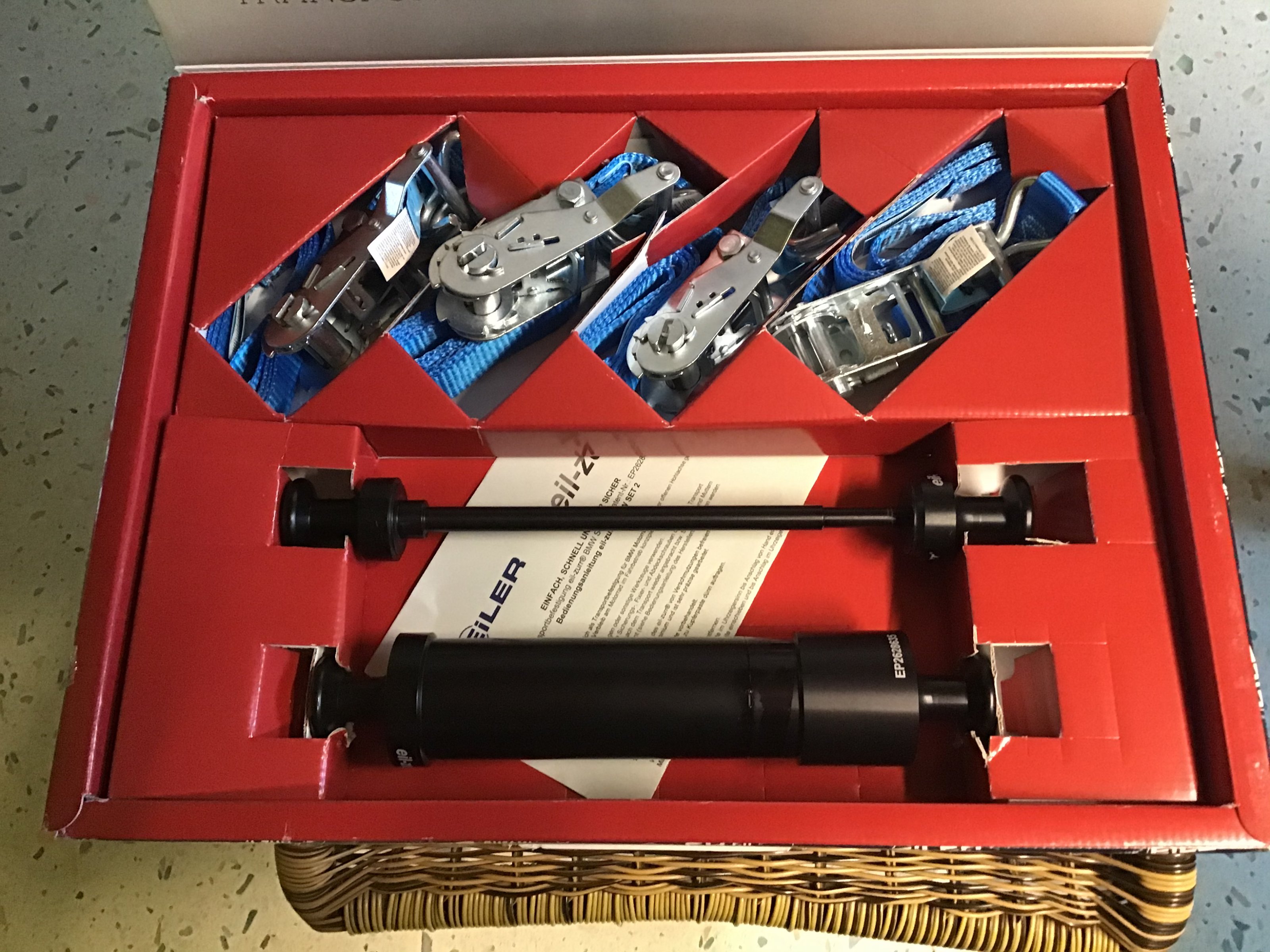Biete ein einmal genutztes Sicherungs - Transportsystem der Firma Eil-Zurr in schwarz an . Es handelt sich um das System für “Alle“ wassergekühlten R1200GS / 1250GS welches einen Neupreis von 249€ hat .