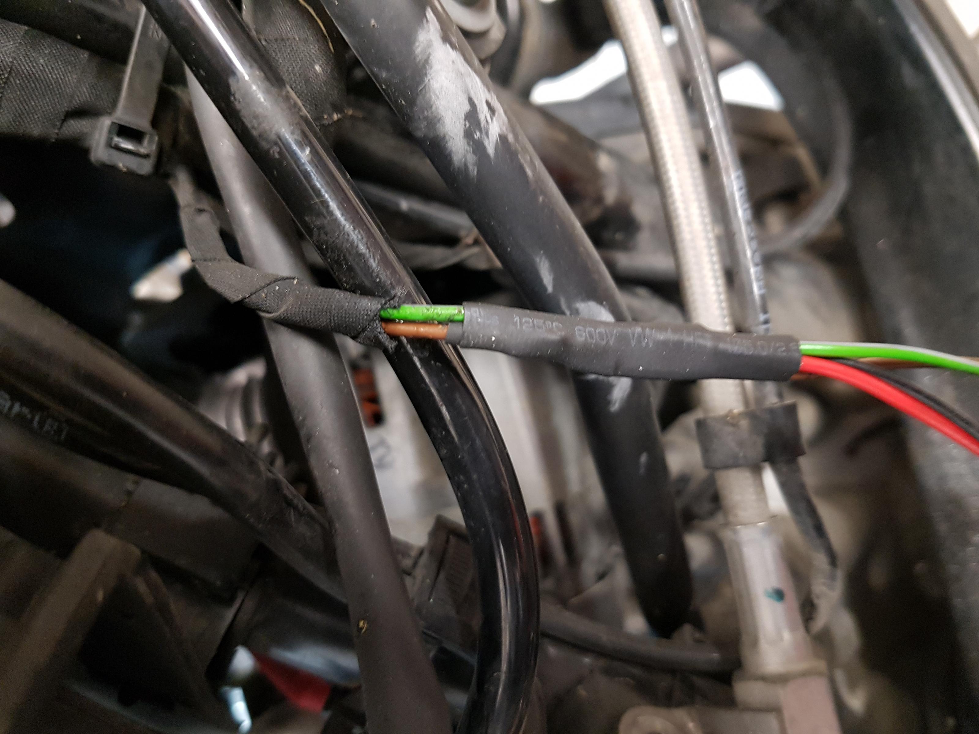 - Elektrik: Den Kabelbaum von der original Hupe bis zur Abzweigung aus dem „großen“ freilegen. Versetzt die Kabel abschneiden (trägt nicht so sehr auf), verlöten und mit Schrumpfschläuchen schützen. Hier reichen Kabel mit 0,75m2 Querschnitt.