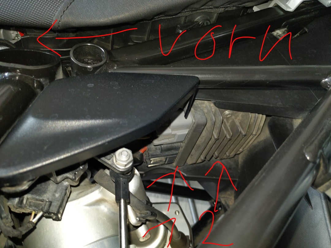 Könnt ihr Mal bitte bei der nächsten Ausfahrt gleich nach dem Anhalten mal fühlen, ob man bei euch auch keine 5 Sekunden seine Finger auf das Modul halten kann? Siehe Nr 1 auf dem Bild, die Aufnahme ist von der linken Seite gemacht. Ich möchte gerne wissen, ob die Hitze normal ist.